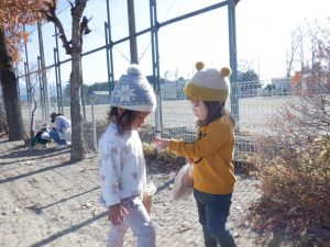 12月になり、木枯らしの吹く中でも子ども達は毎日元気に庭で自然物探しを楽しんでいます。