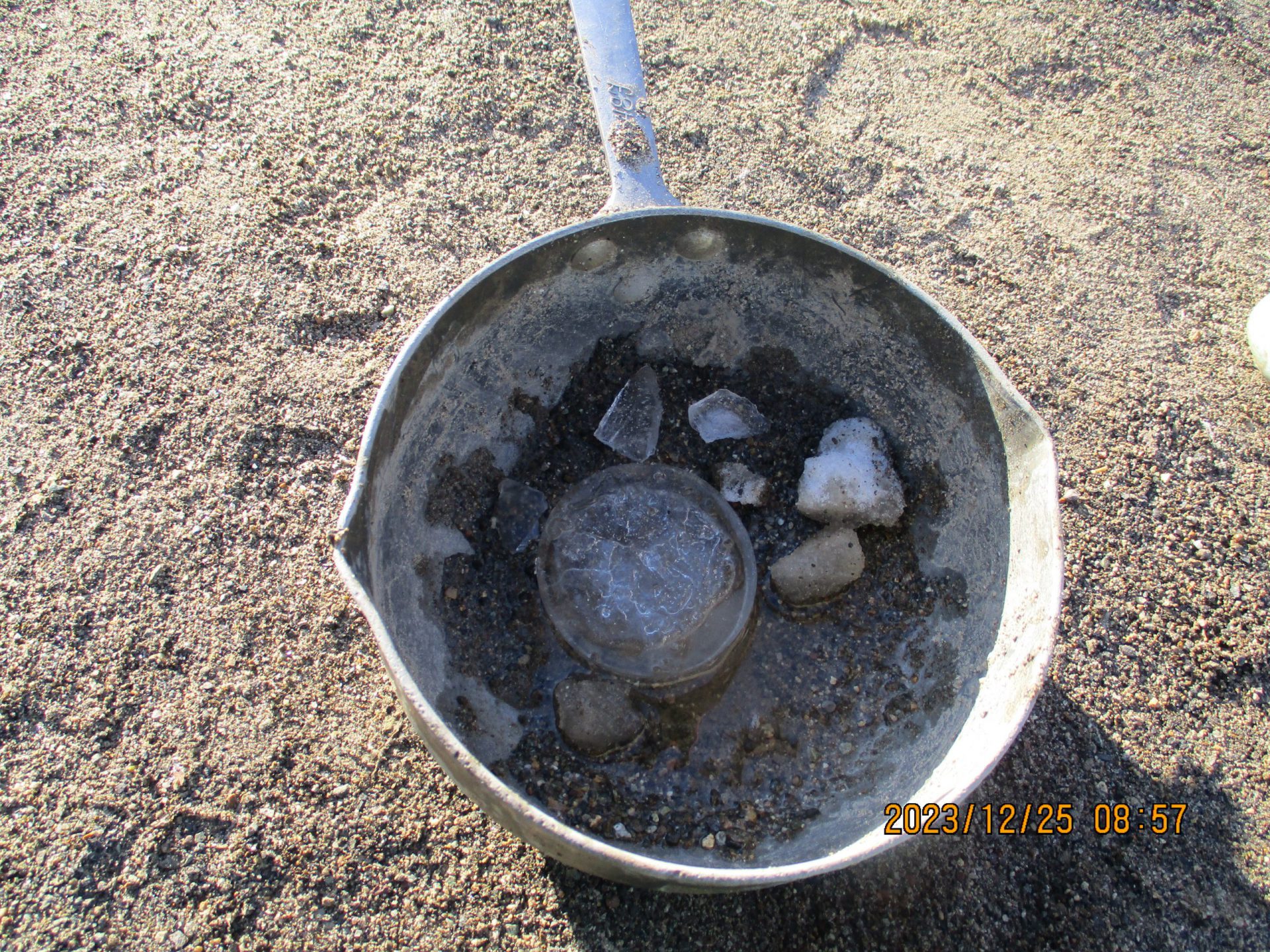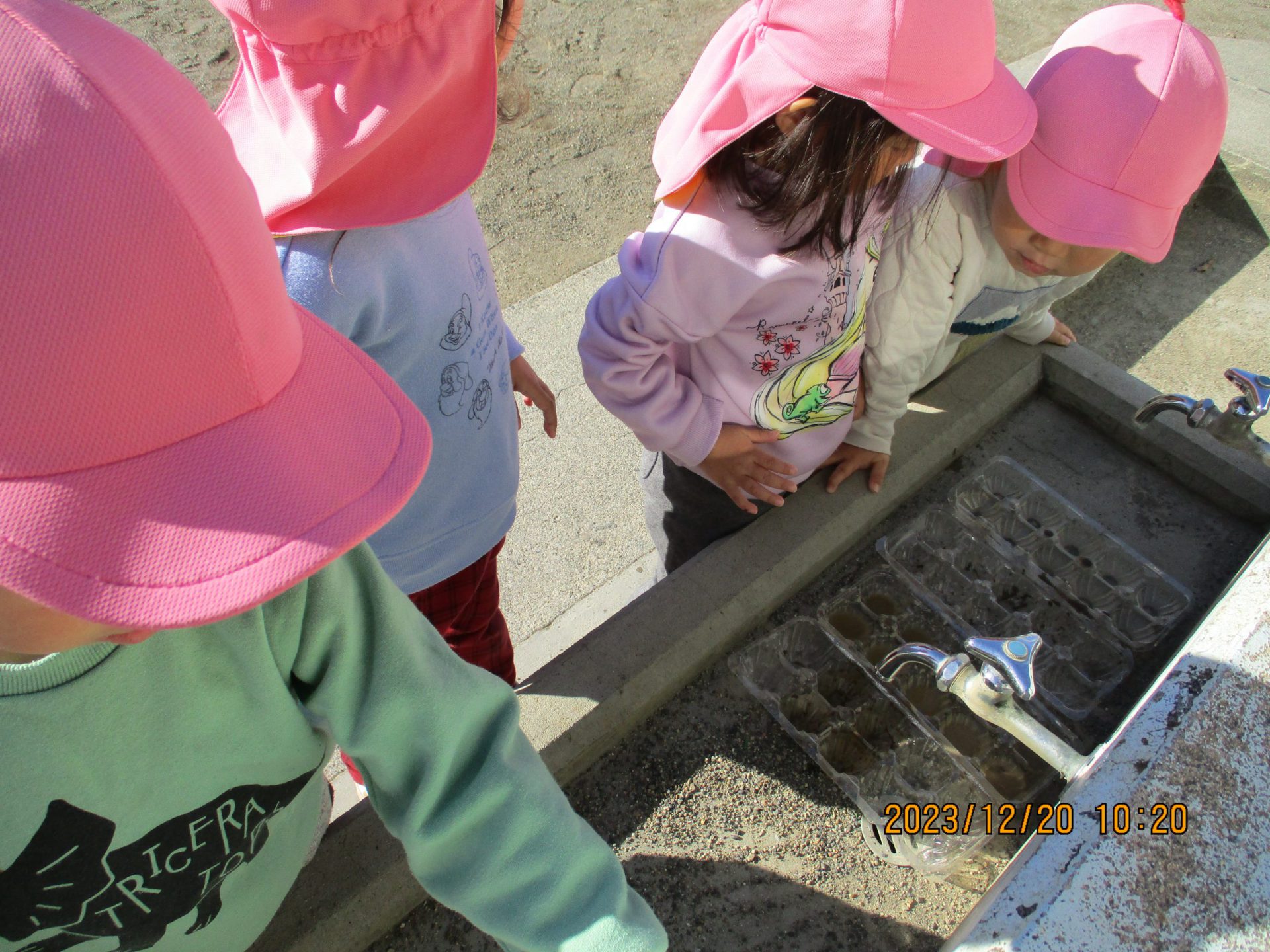 保育園で一番寒い所に容器を置き一日待ってみることに。