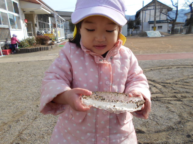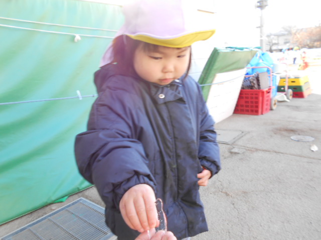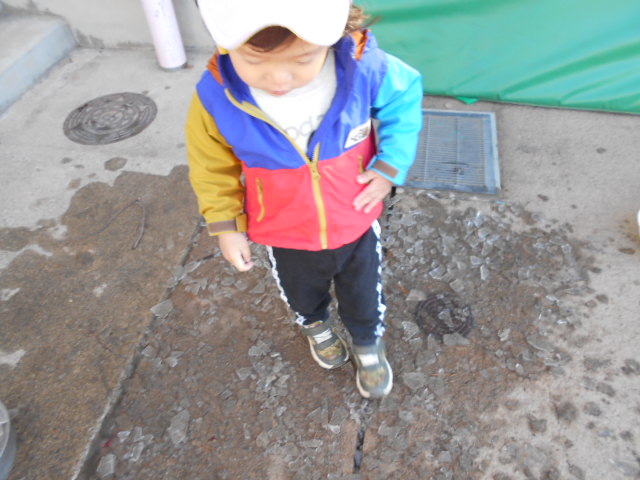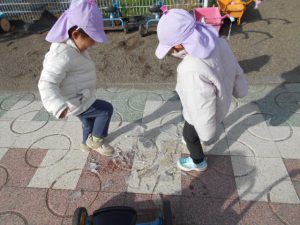 手で触るだけでなく足で割ってみると音が鳴り、時に優しく、時に激しく氷を踏み、楽しんでいました。