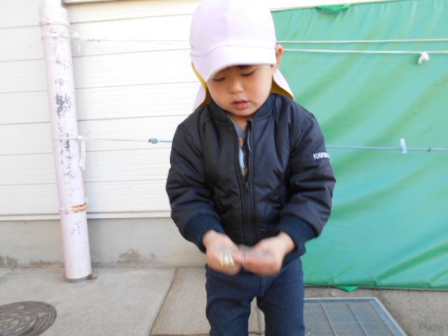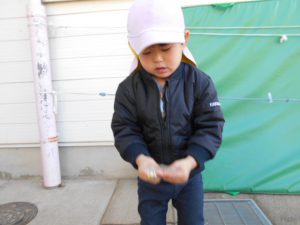 ・普段から戸外遊びや散歩中、自然物に興味津々の子どもたち。