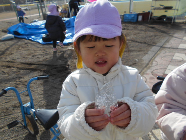 実際に氷に触れてみて、冷たさや氷を触った感触、足で踏んでみた時の音を楽しむことが出来、良かったです。