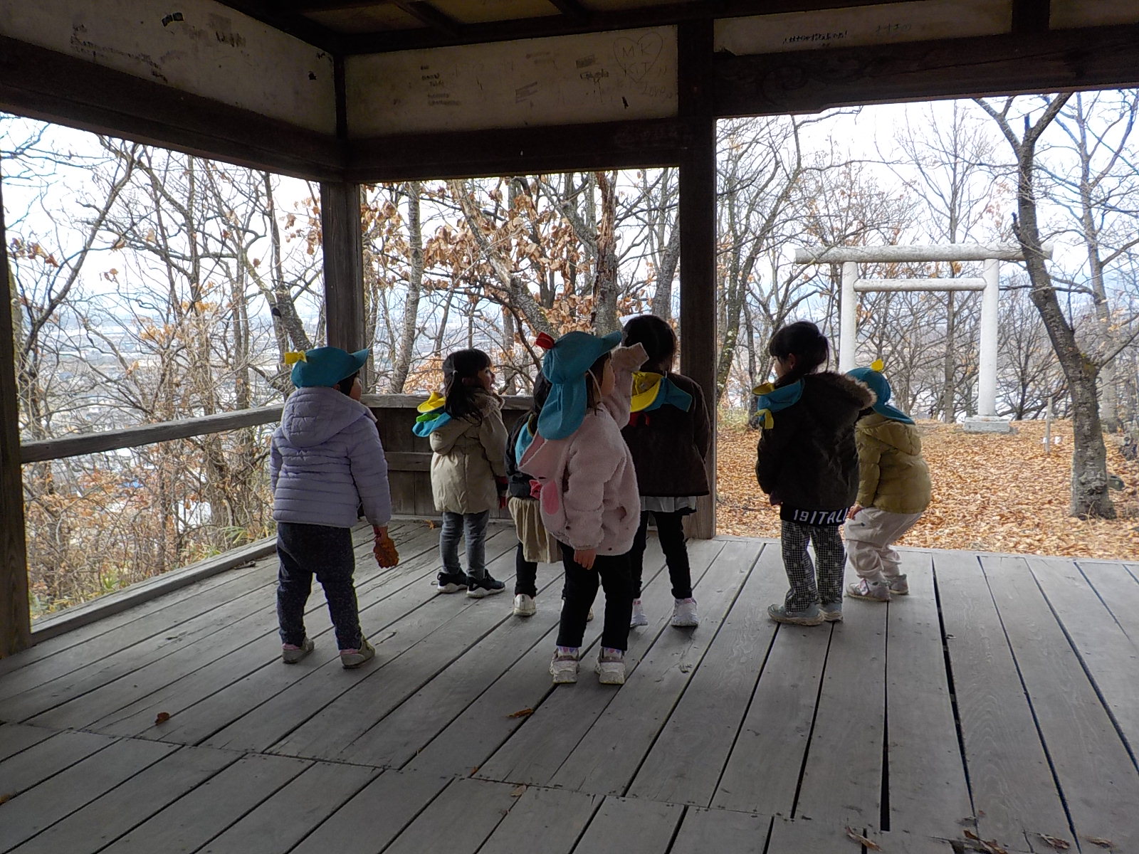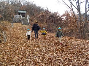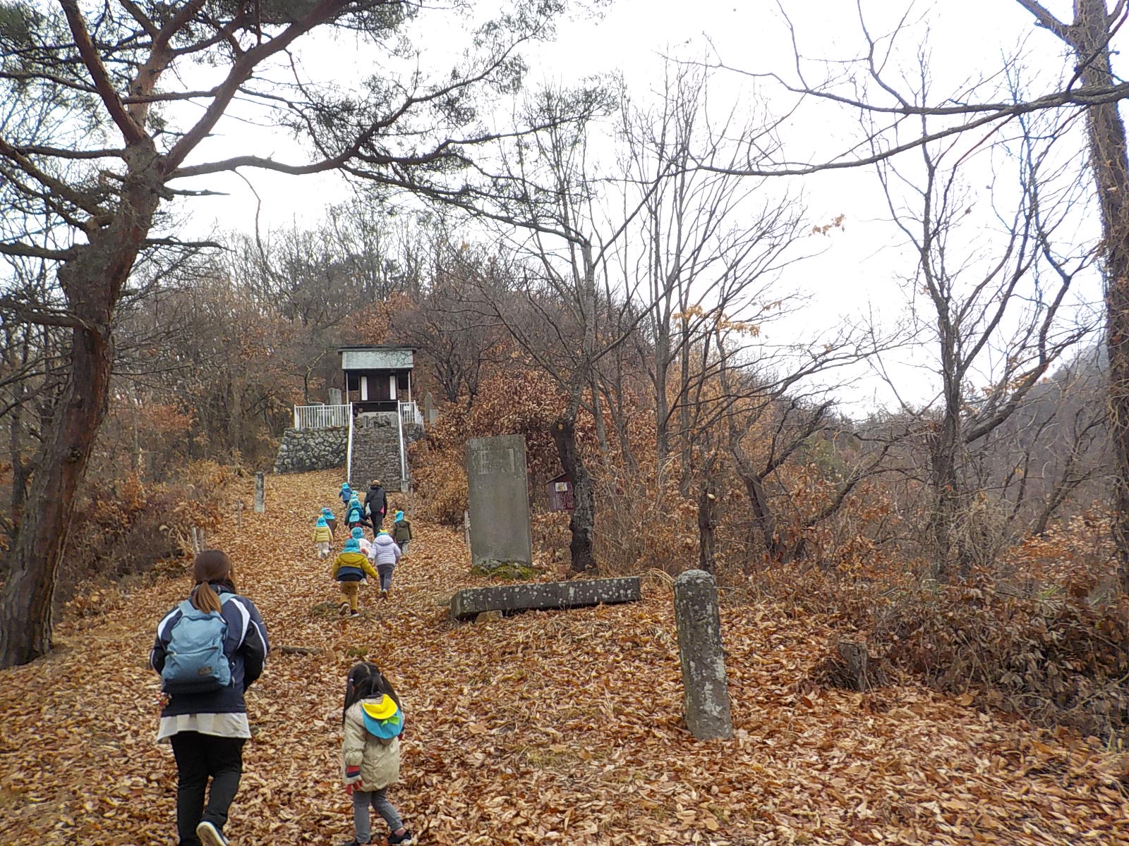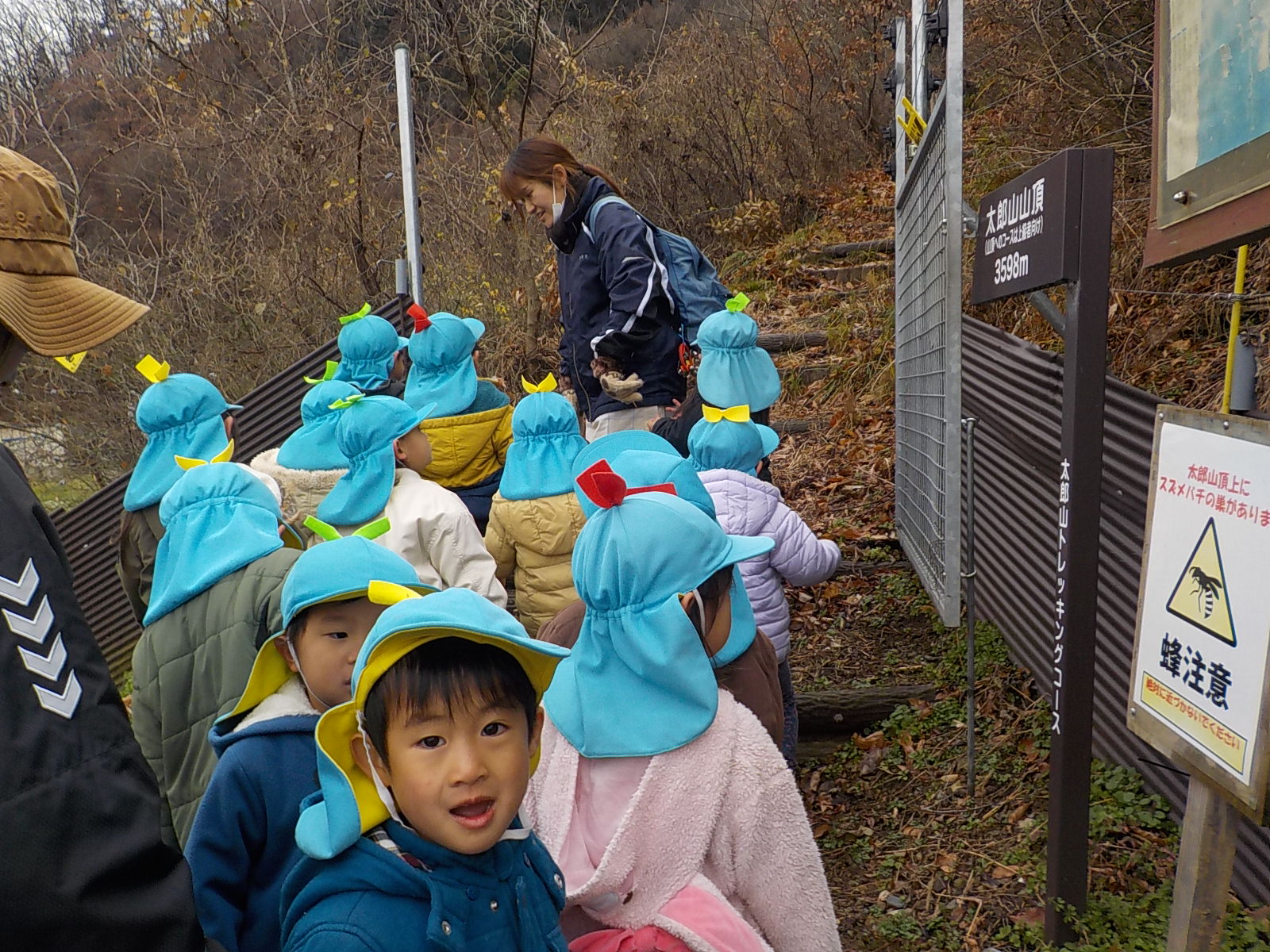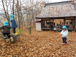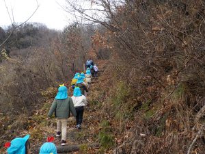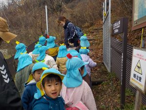 今日は年少さんだけで天王山を登ります。天王山は綿内地区にある標高392メートルの山で