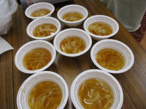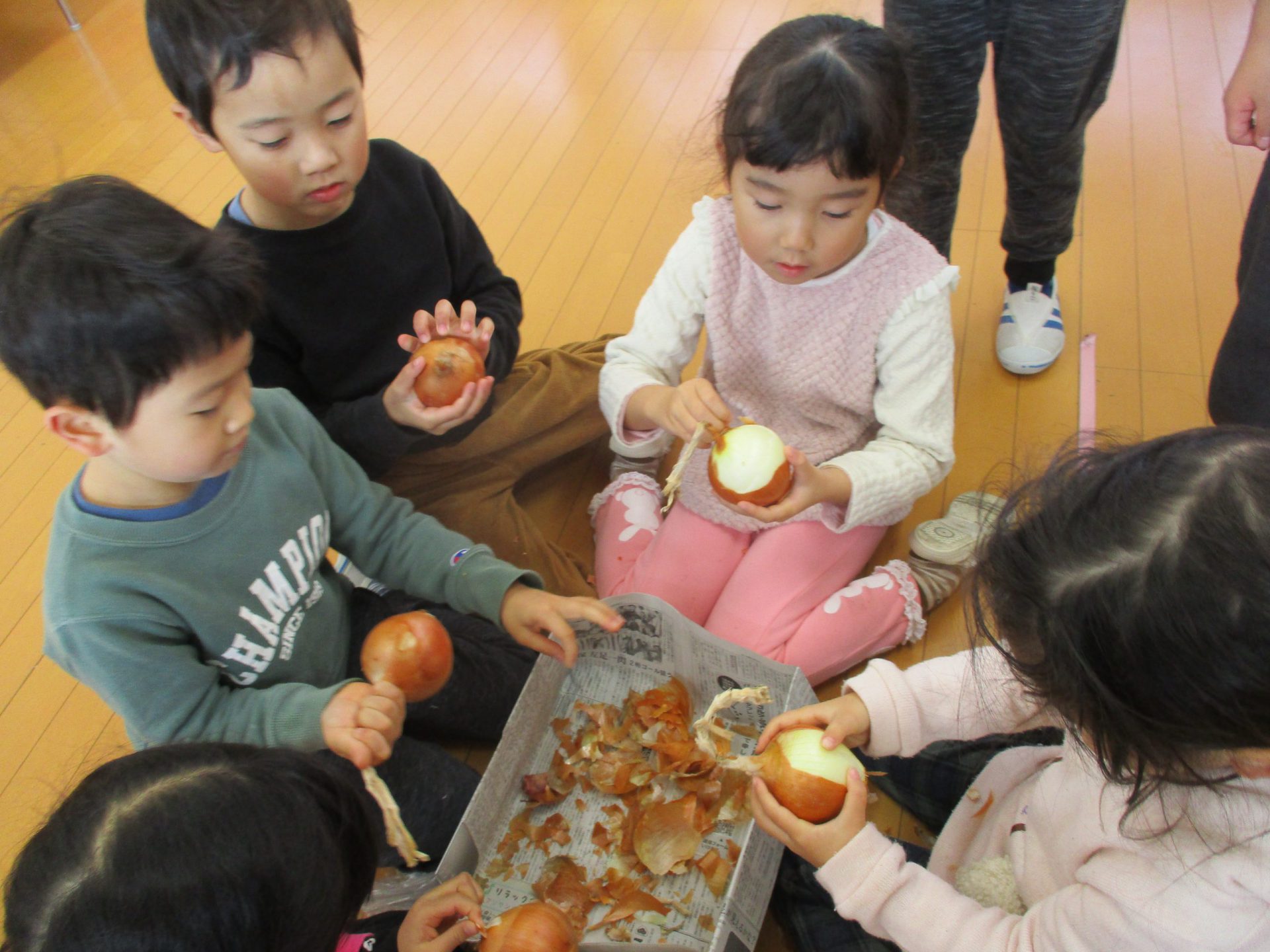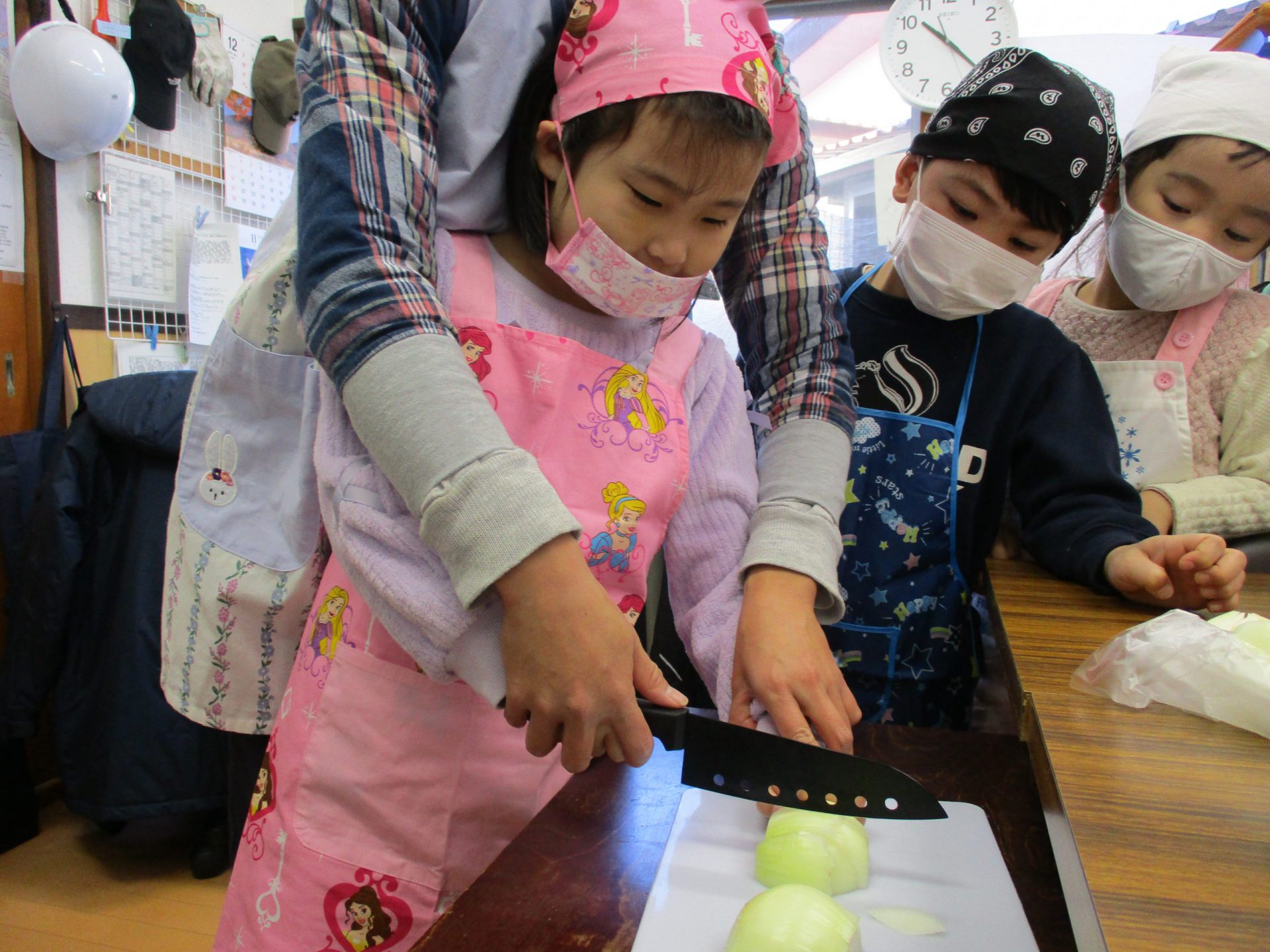 一人づつ包丁で玉ねぎを切る体験をしました。