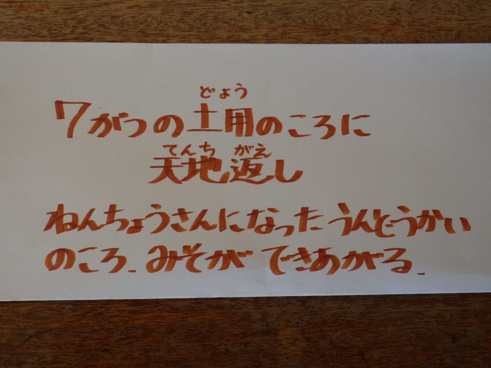 保育士「お空は天、天にお日様が昇るでしょ?地は地面。下にあるでしょ?その天と地をひっくり返すことを天地返しって言うんだよ。」