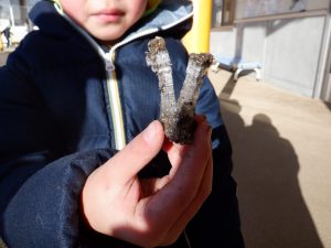 年中の時に霜柱をたくさん見つけたことを思い出し、朝冷え込んだ日に園庭へ出るとすぐに霜柱探しを始めました。