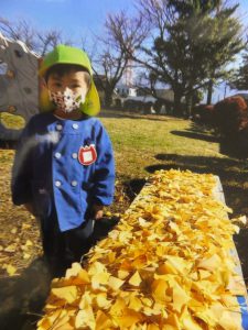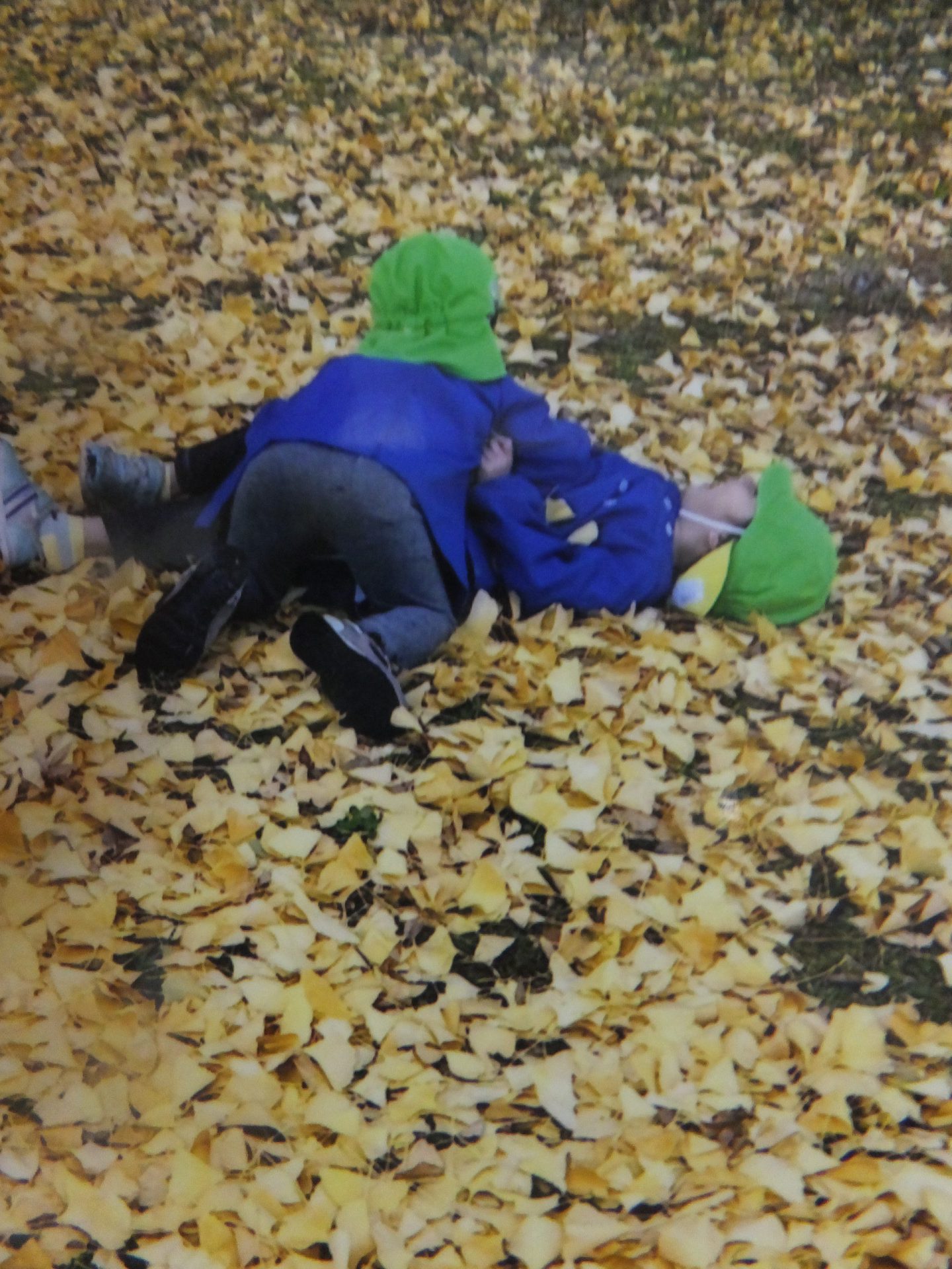 ・たくさん落ち葉を集めて”お風呂屋さん”をしたり”葉っぱのかいじゅう”なったり楽しんでいた。
