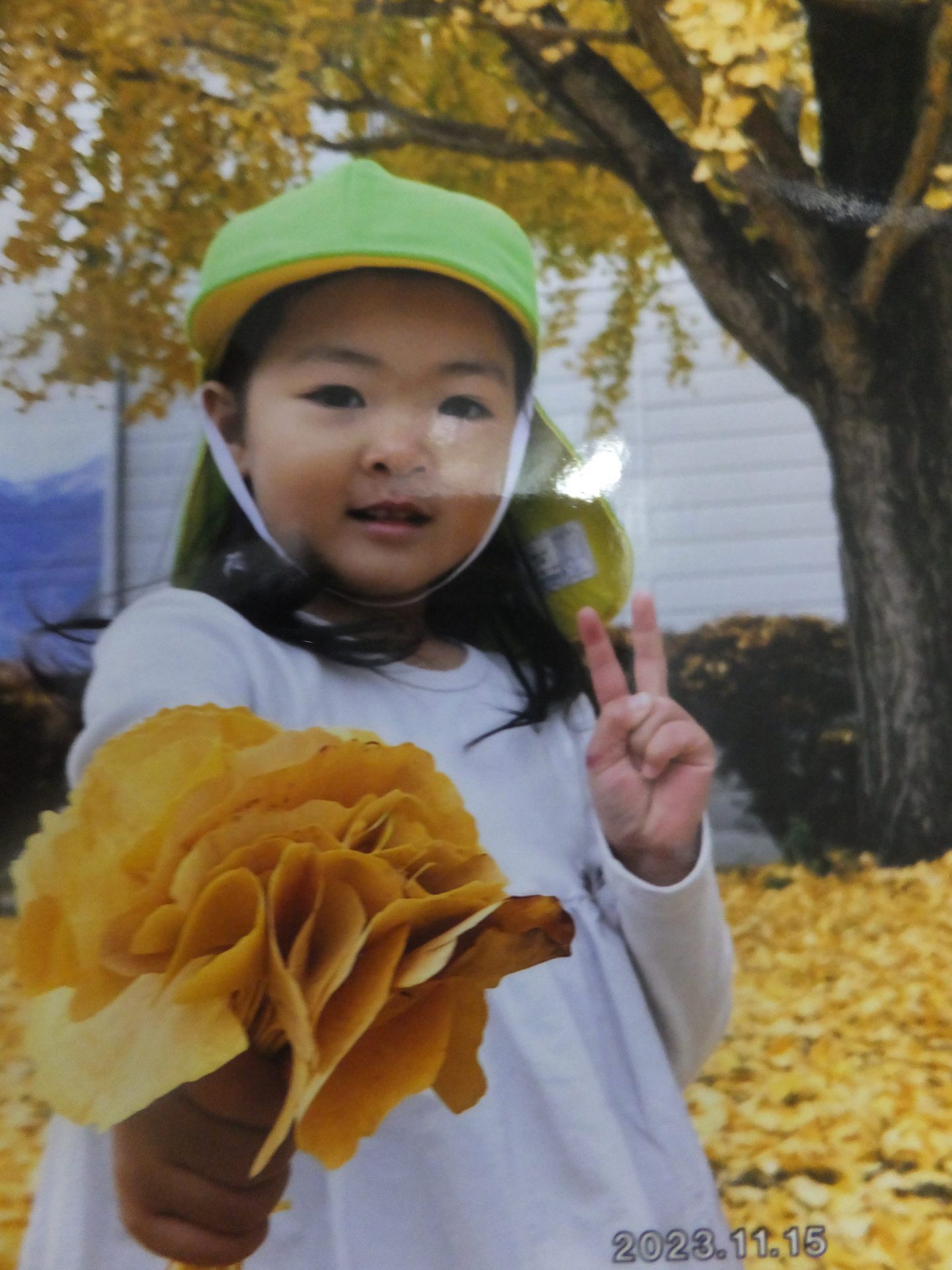 銀杏の葉っぱの花束♡ ママにあげるの。