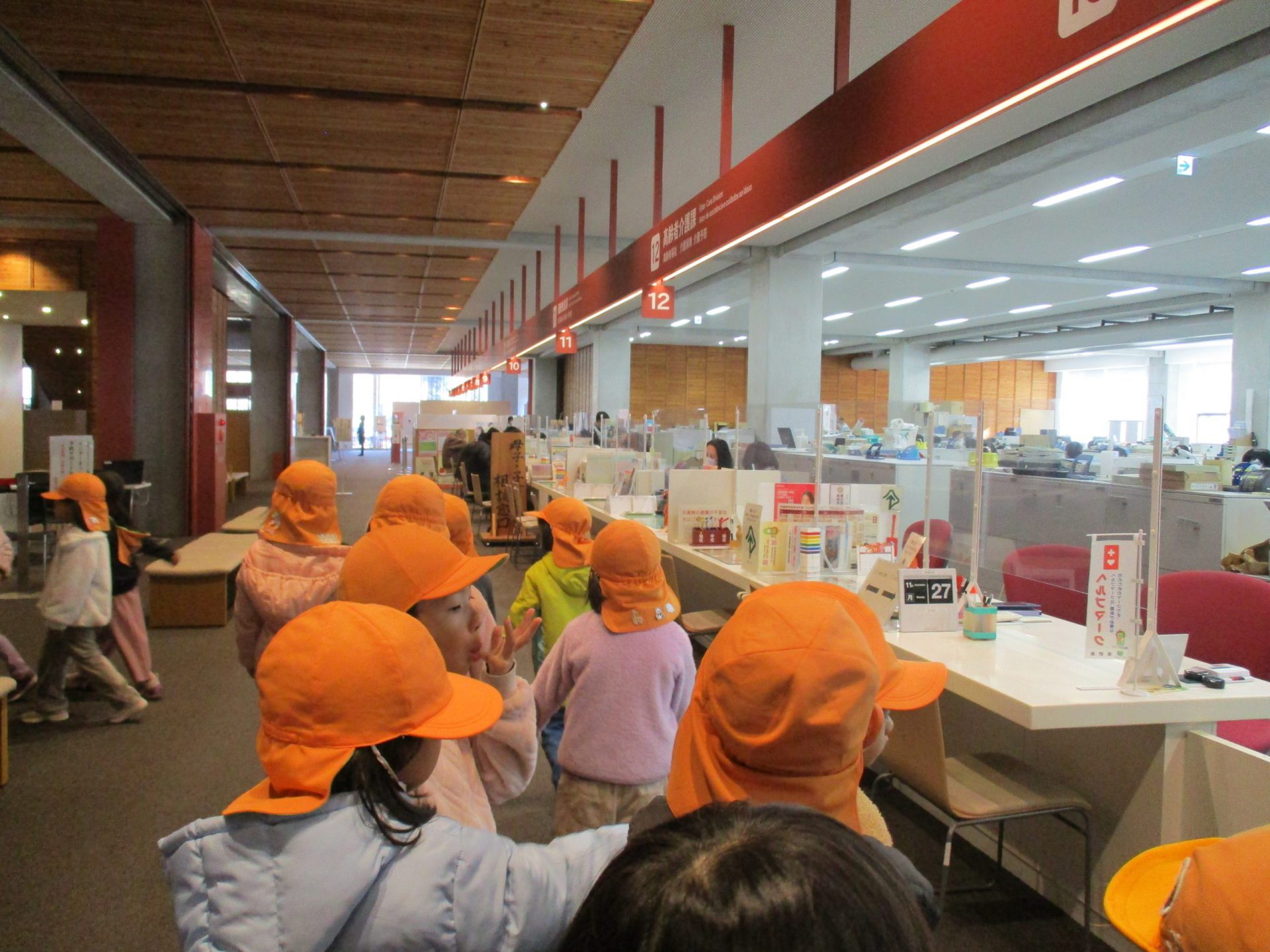 早速、本庁舎で働いている、前の園長先生より本庁舎はどんな所か説明してもらいました。「すごいね!どきどきするね!」「楽しみ!」と子どもたちもわくわく!