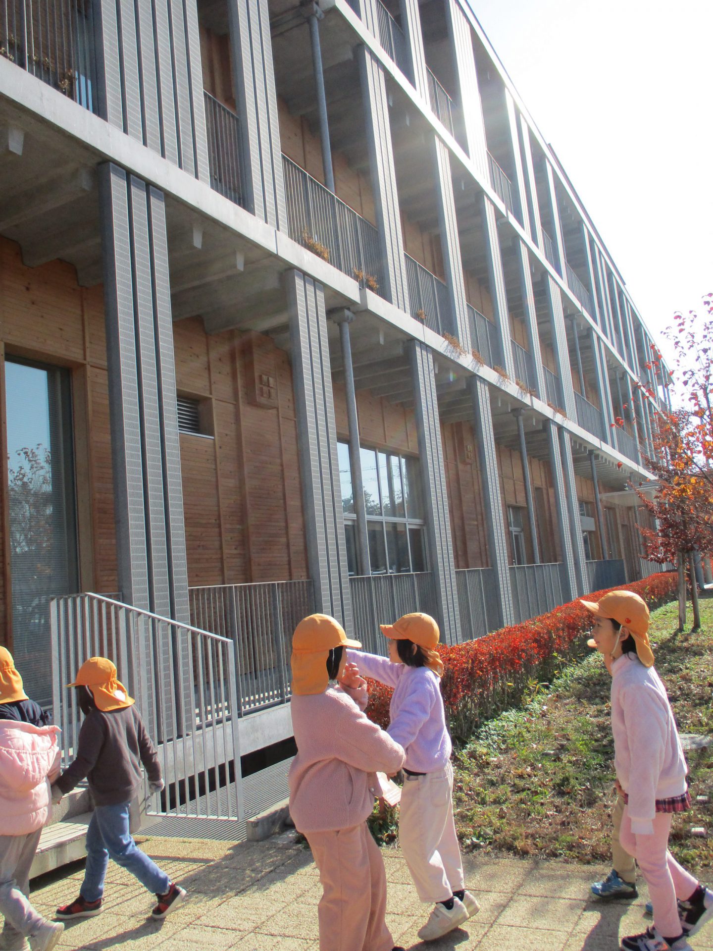 「あれ、こども園じゃない?」「あっ!あれお母さんが働いているところだ」