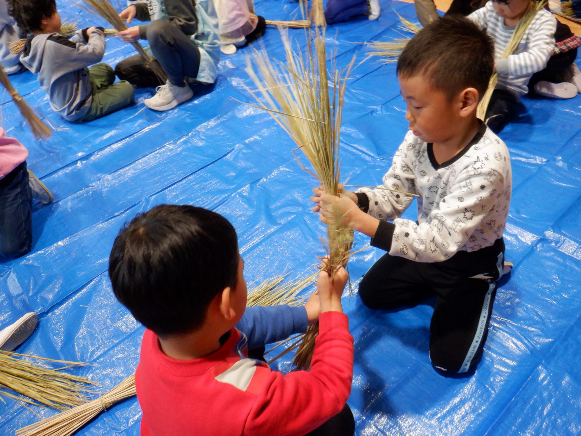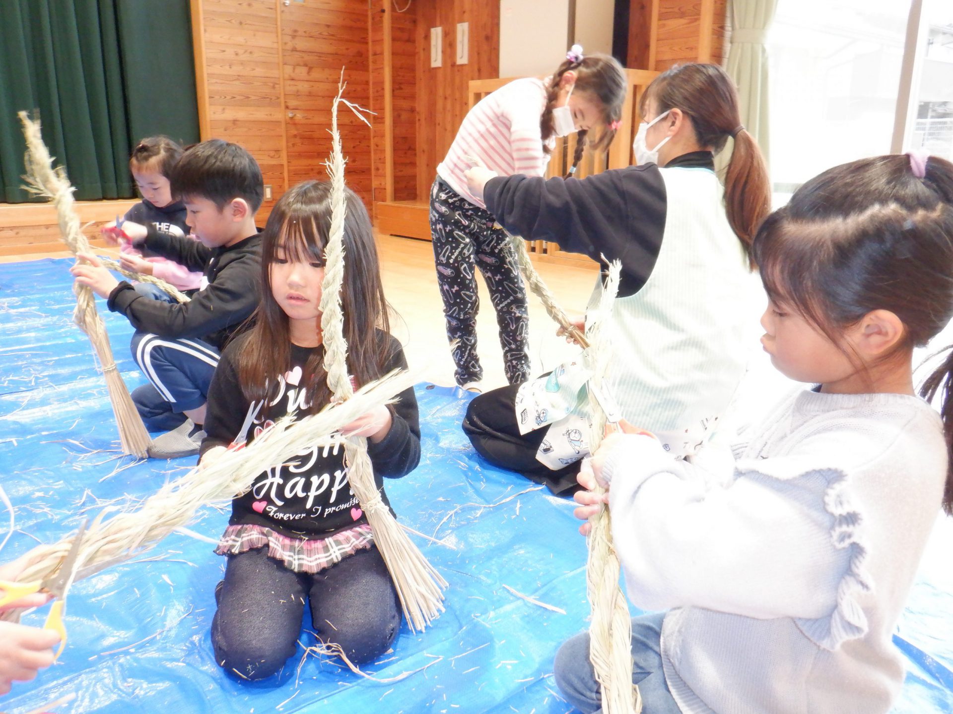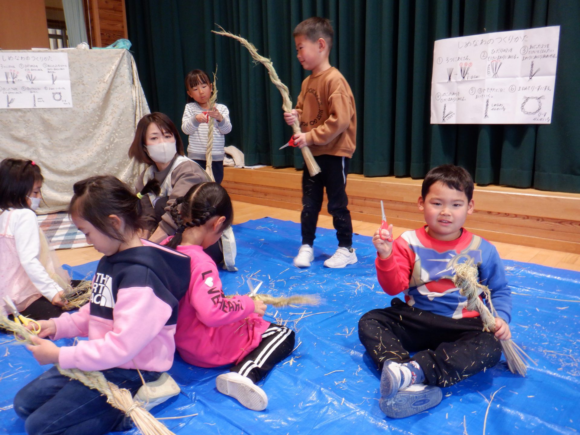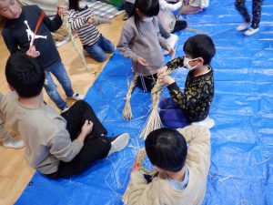 地域の方がしめ縄作りを教えてくれます。