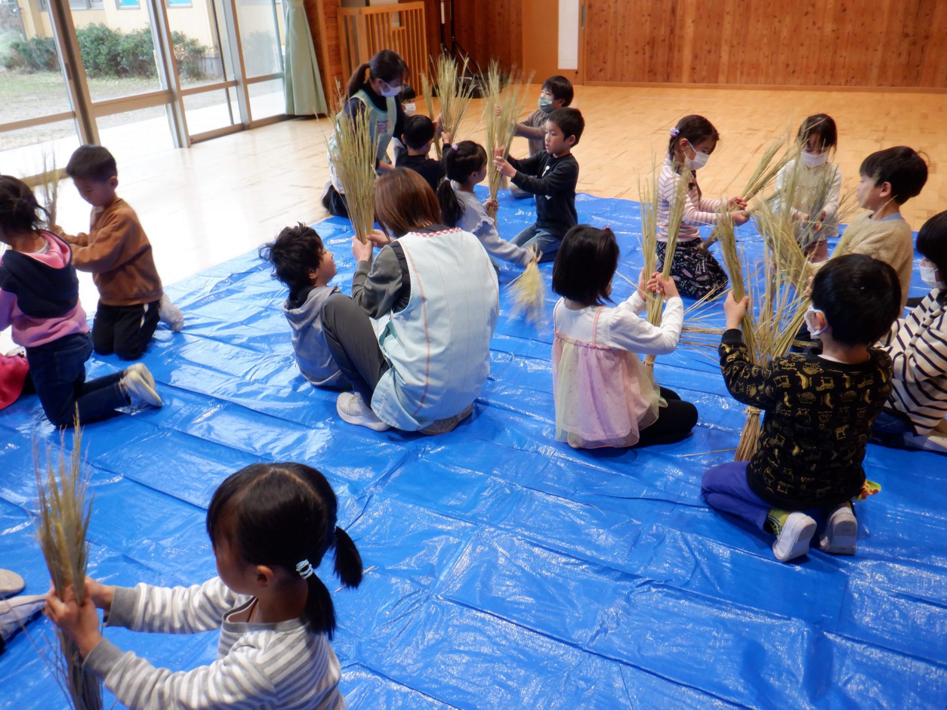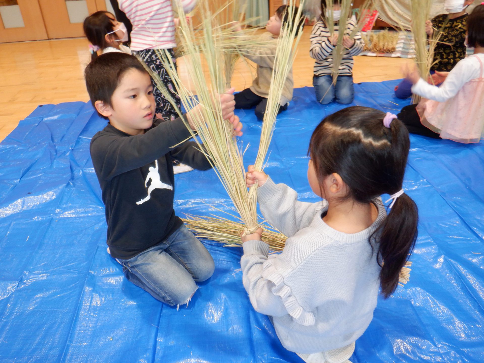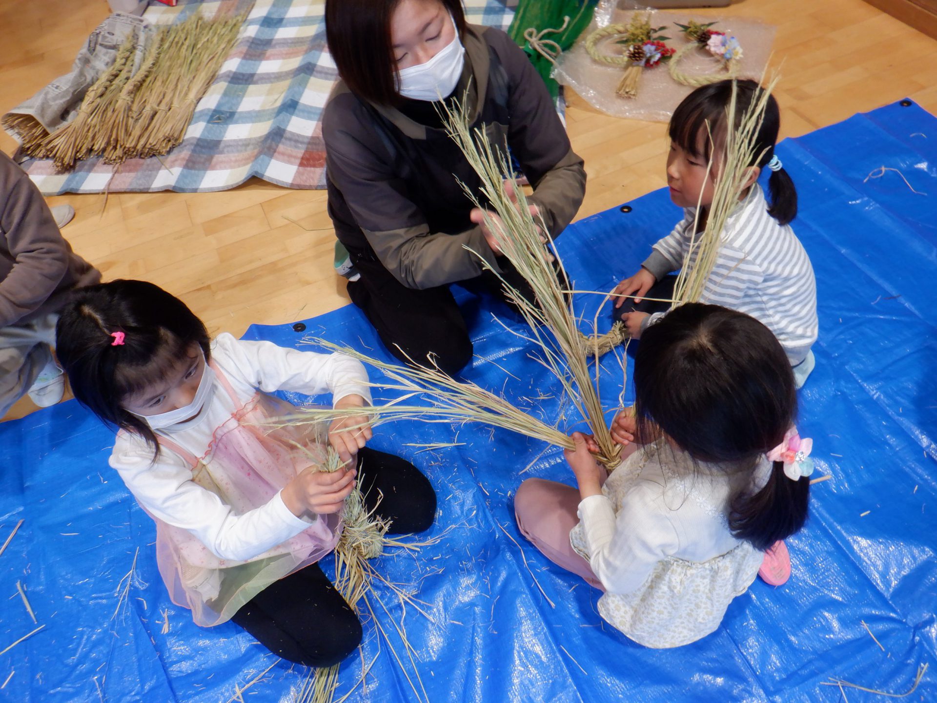 地域の方がしめ縄作りを教えてくれます。