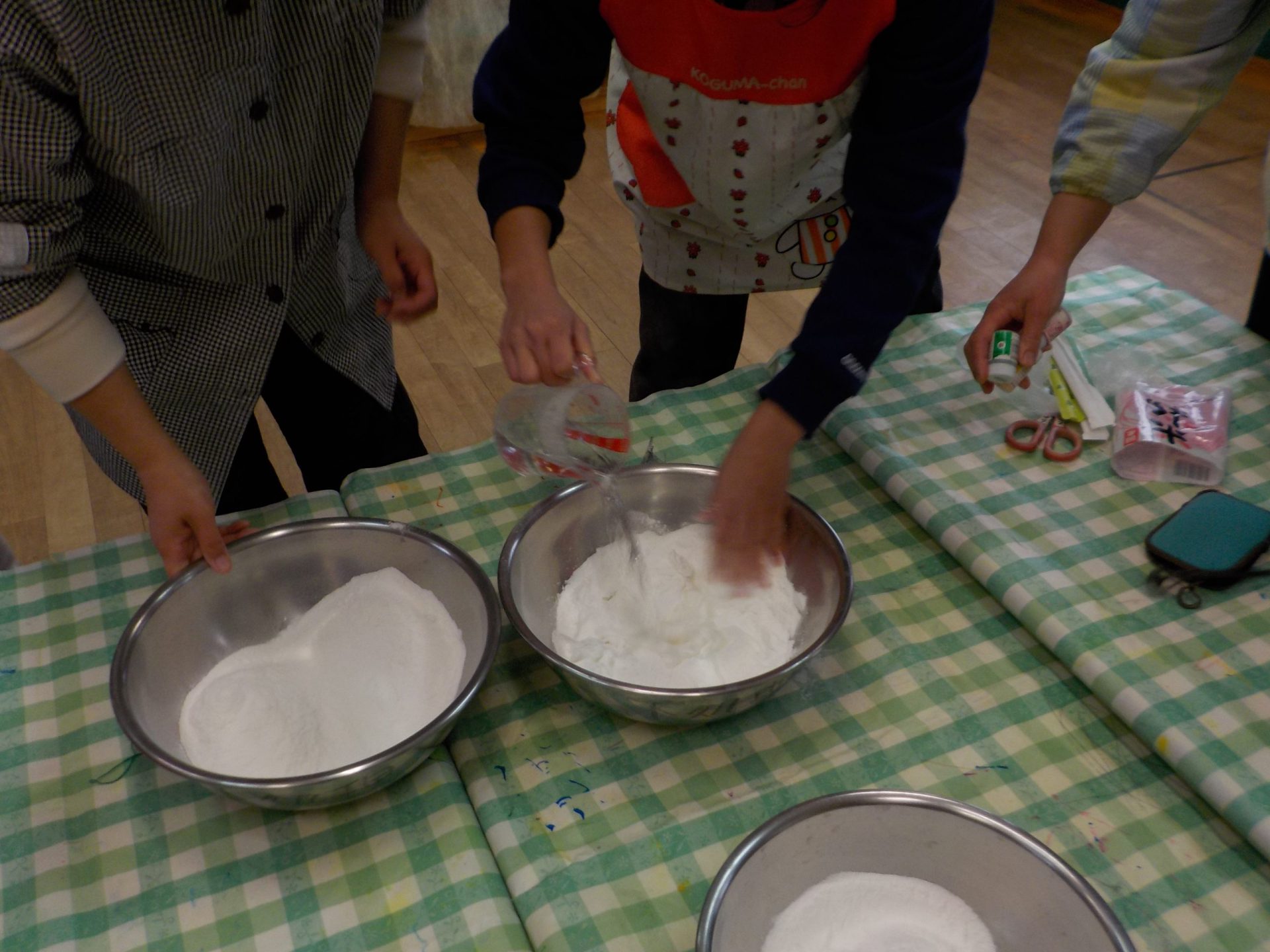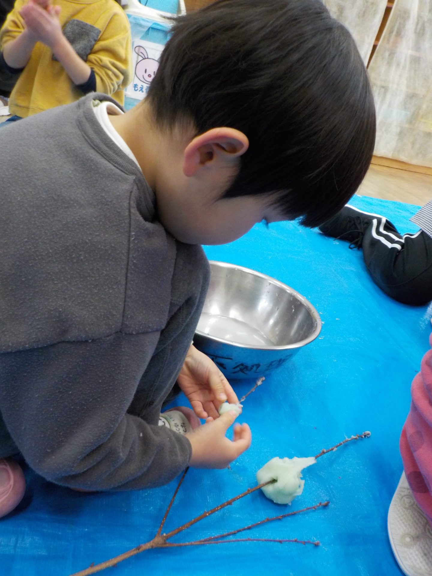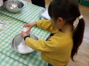 昨日年長さんが地域のお店に買いに行ってくれた米粉にお湯を入れて