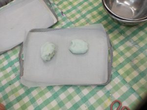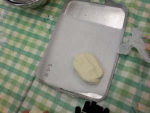 ・こねているうちにだんだん固くなってきた。