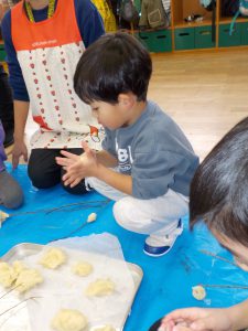 未満児さんも、こねたり丸めたり。