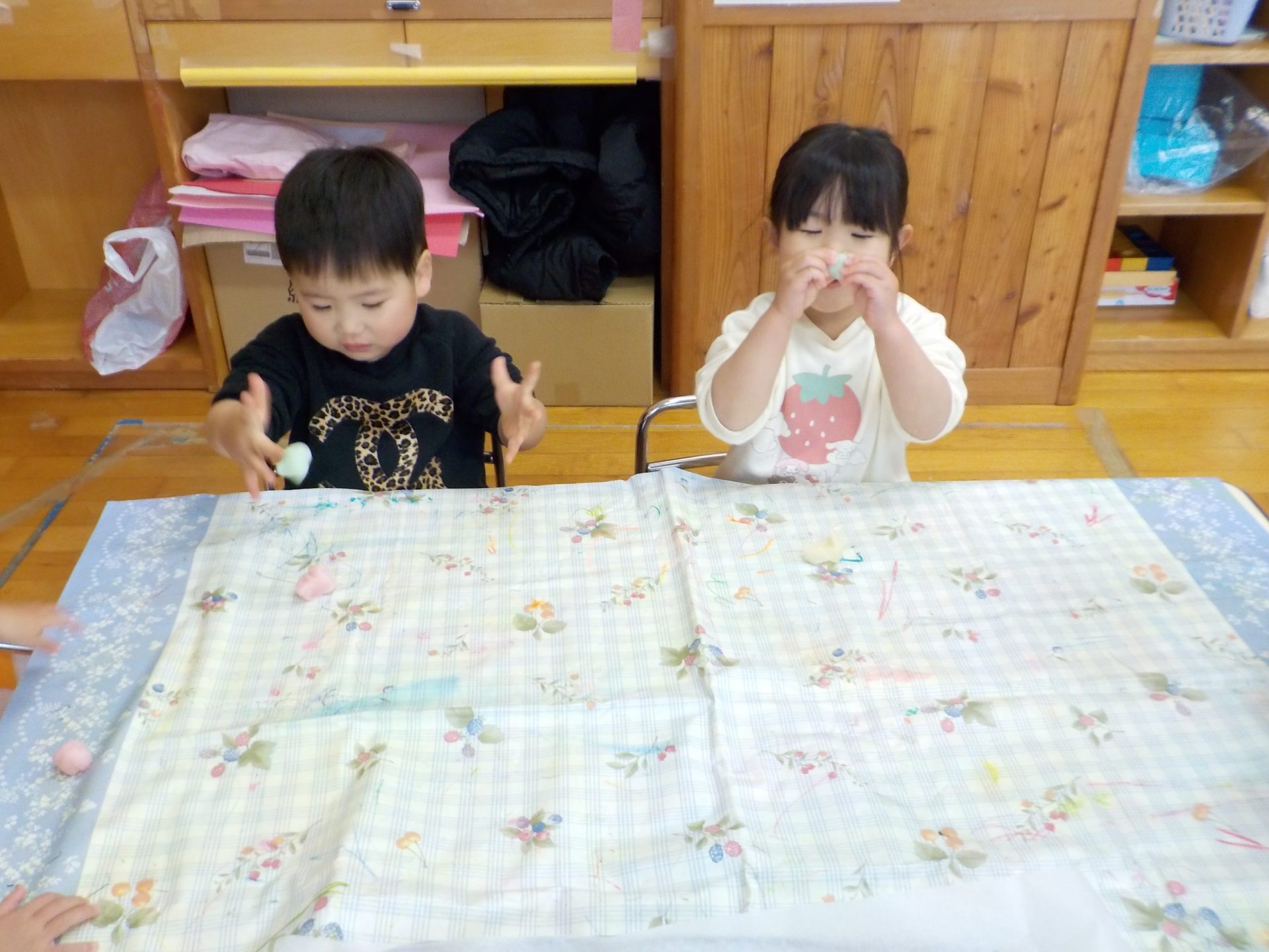 「コロコロ楽しいね」「もう1個やる!」「いいにおいする~」