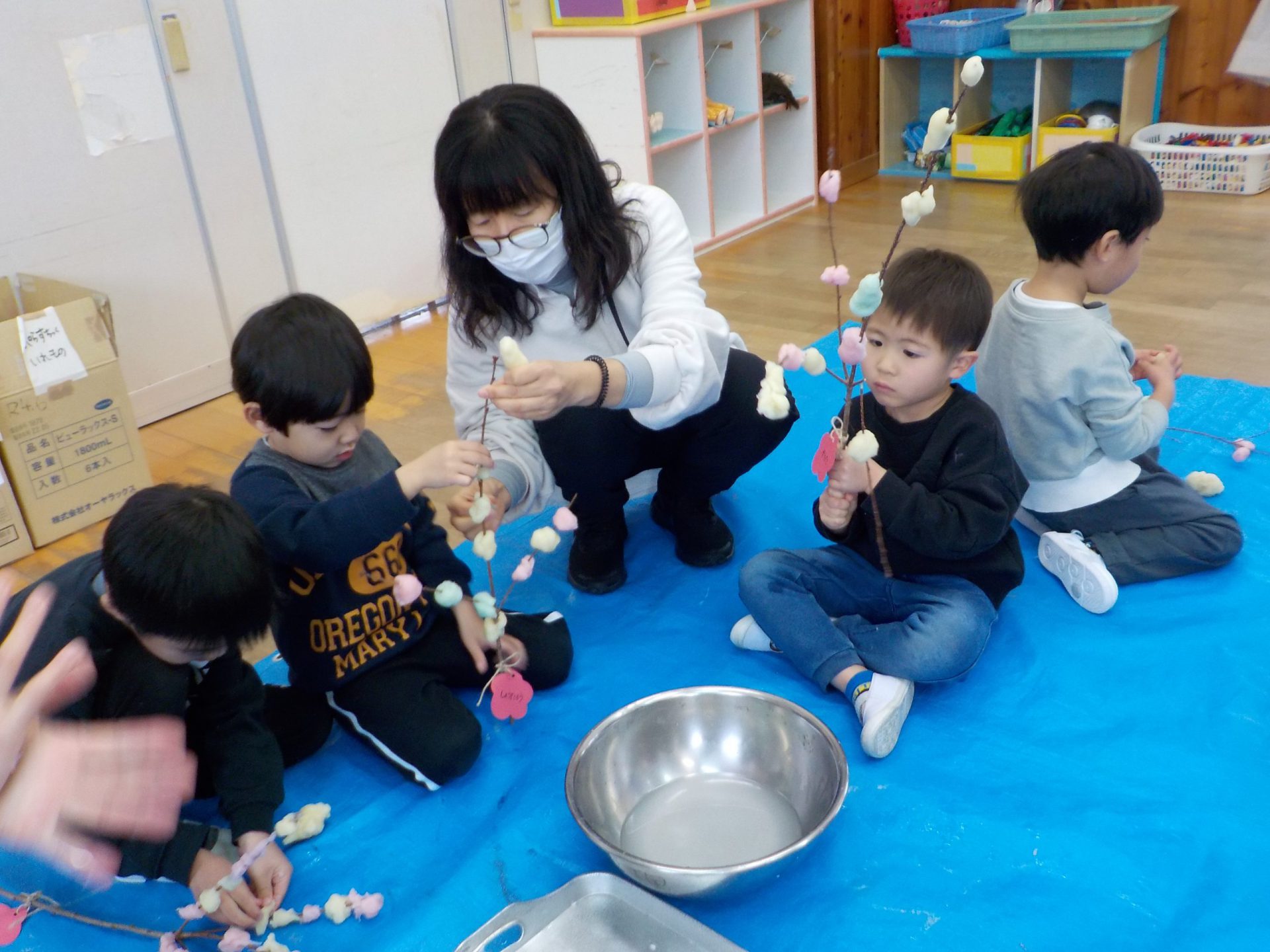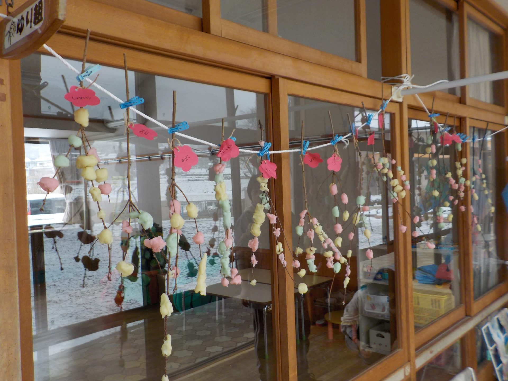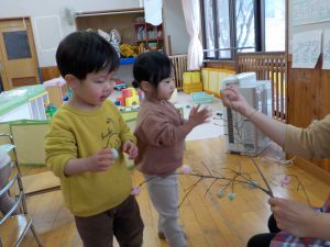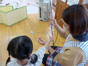 未満児さんも素敵なまゆ玉飾りができました。
