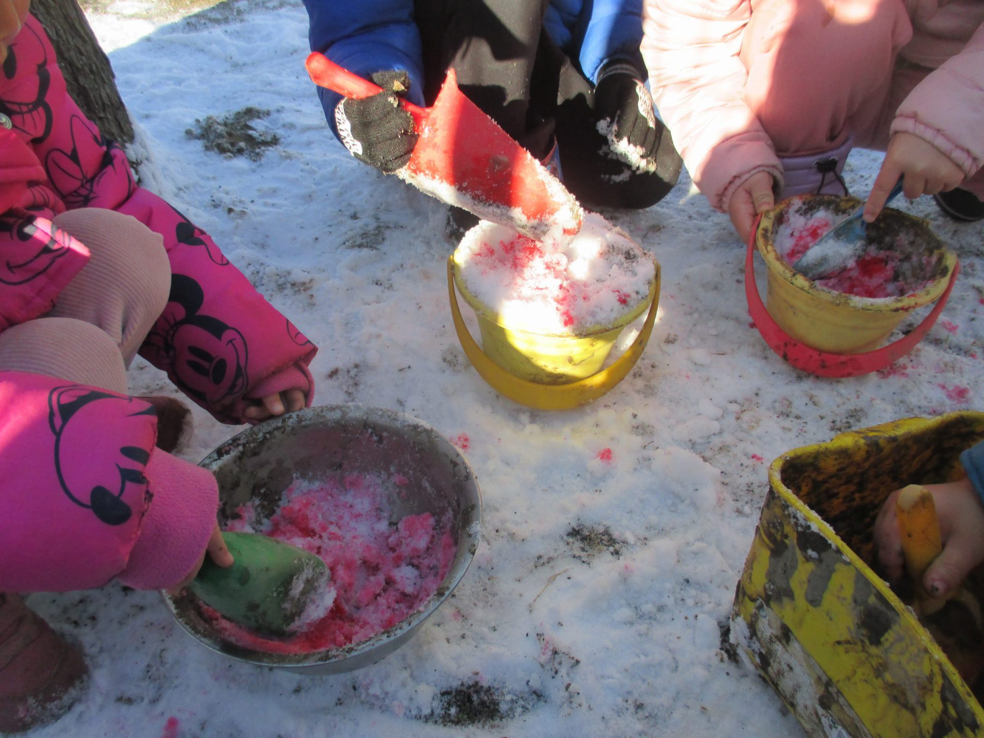 「この雪で何して遊ぶ?」「色をつけてみる?」「うん」