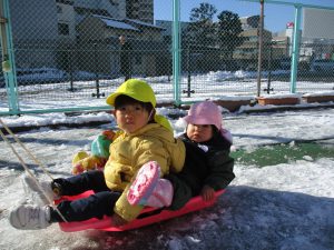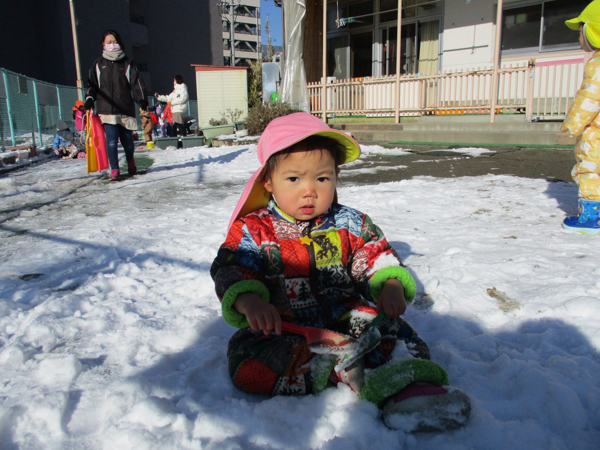 まだまだ雪が少ない初めての雪遊びでしたが、一人一人が楽しんでいました。