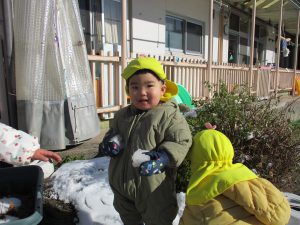 まだまだ雪遊びは始まったばかり、今後どんな風に楽しむのか、保育士は子ども達の興味に合わせて環境を整えて冬ならではの経験をたくさん保育に取り入れたいと思います。