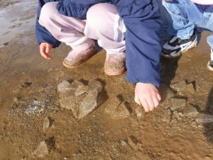 触って見ると、「冷たいね〜」「ポロポロするね〜」