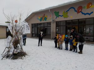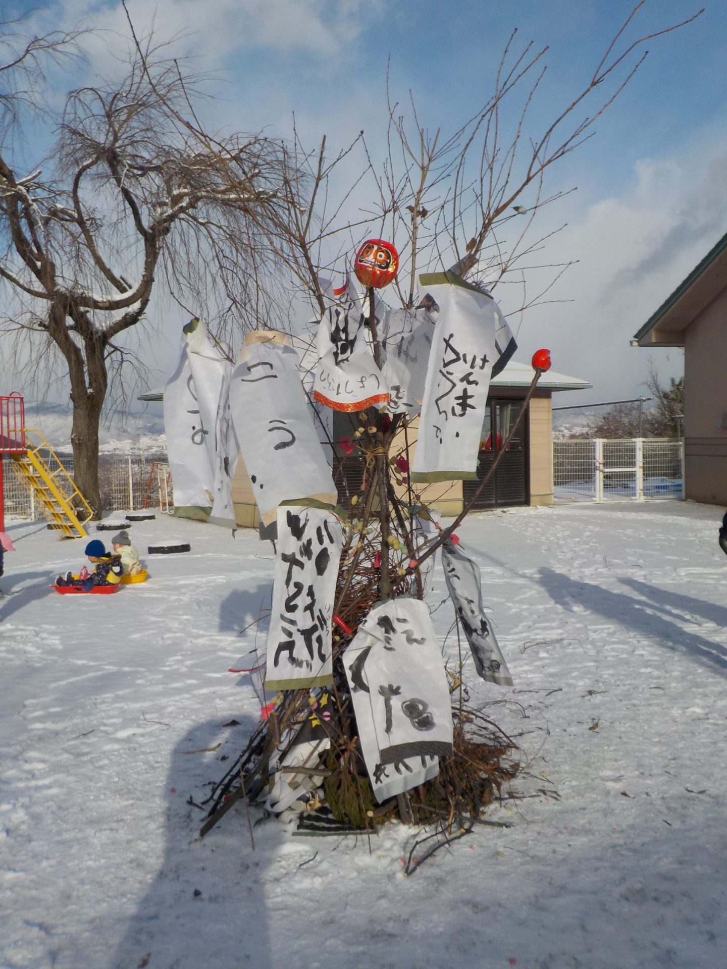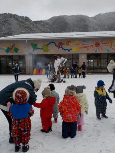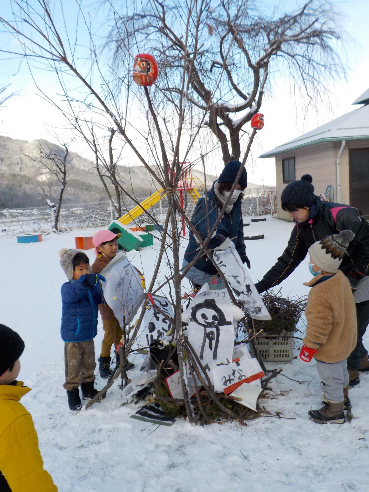 お正月の行事を経験し、1年の無病息災や自分の願いを祈る機会になりました。年中児の、年長児への温かな思いも聞けて、今までの異年齢生活の経験が、心の成長に繋がっていることを感じました。