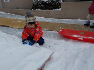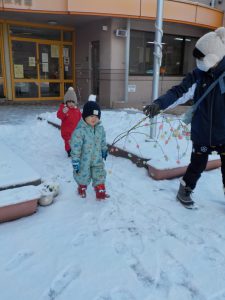 ようやく雪遊びができて、嬉しそうな子ども達です。