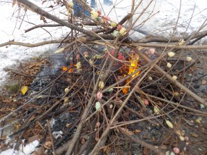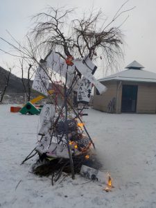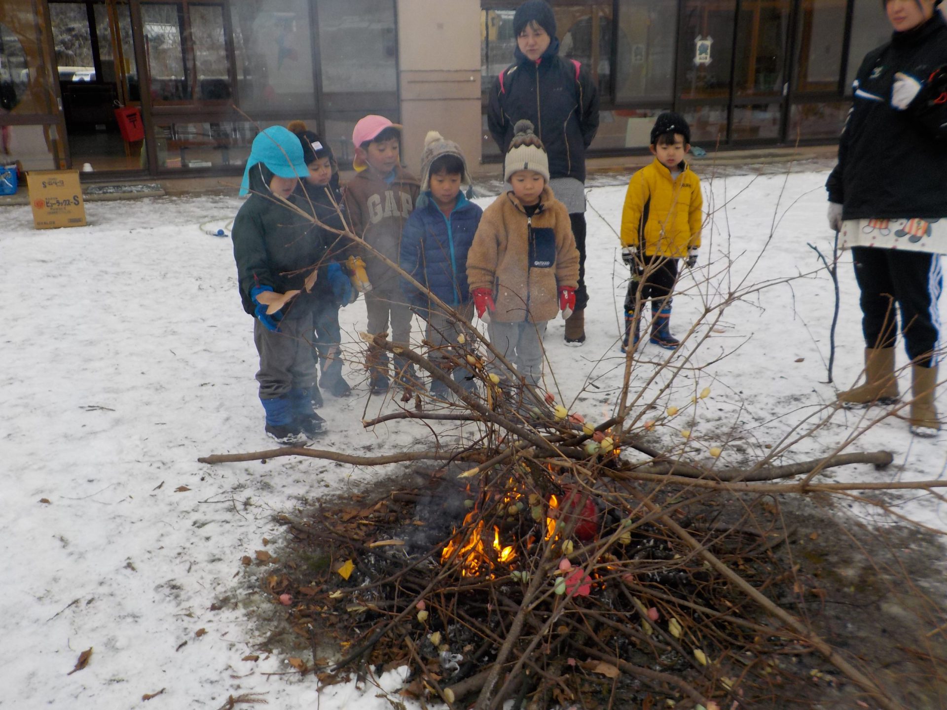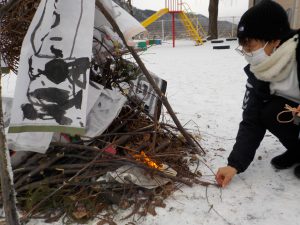 みんなで1年のお願いをしながら、燃えていく様子を見ています。