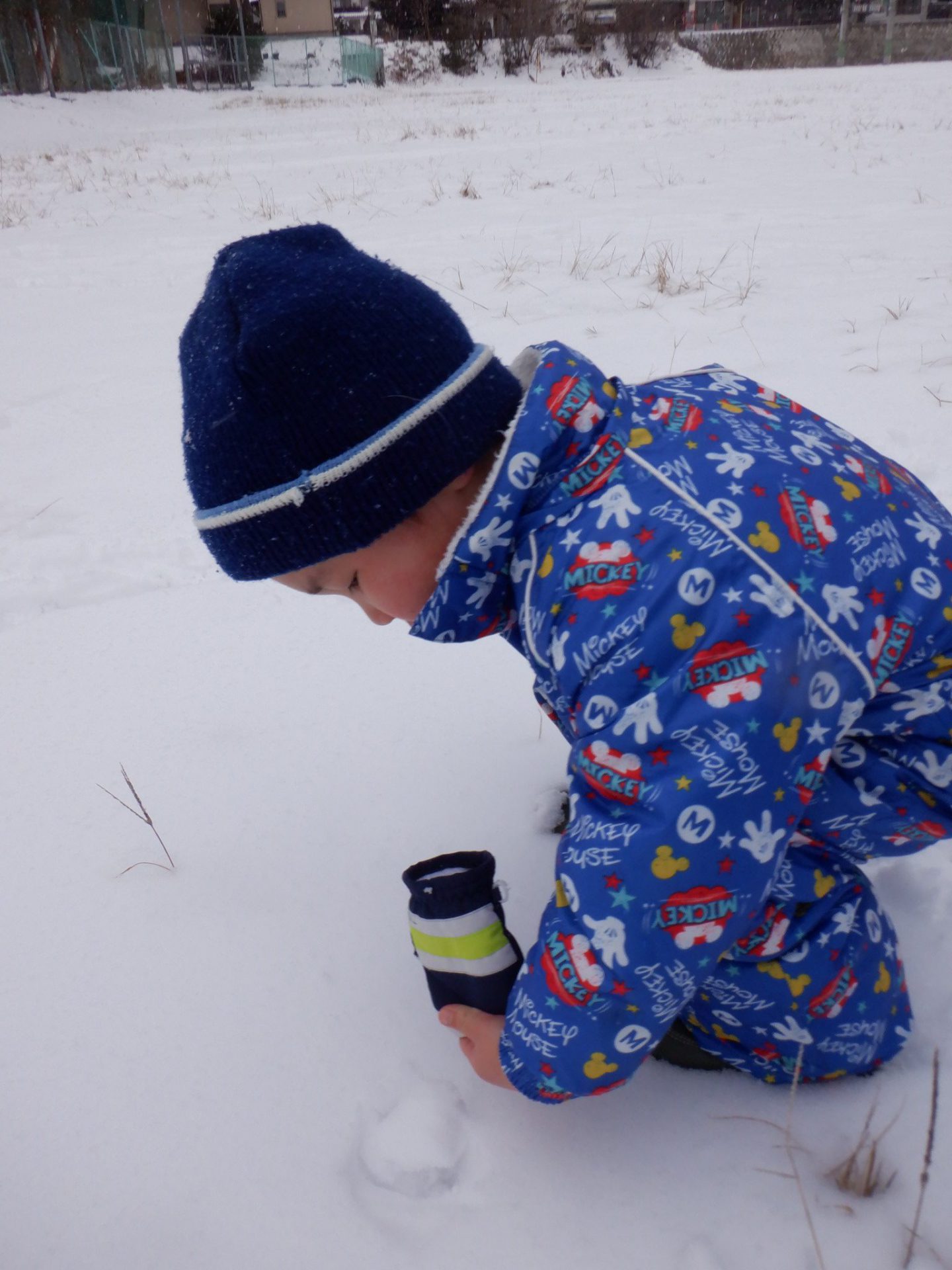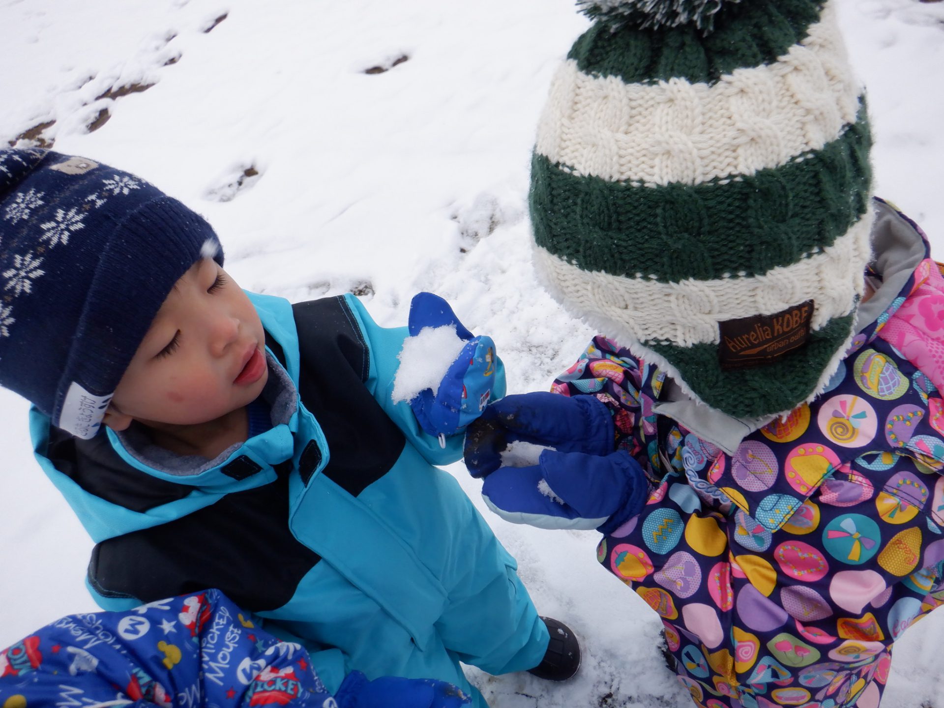 ようやく積もった雪に触れて、雪ってどんなものなのか