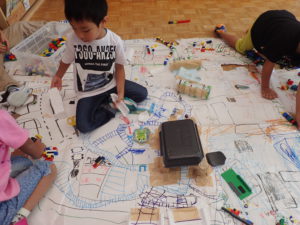 色々な素材道具を使って自分たちなりのルールを決めて工夫して遊んでいました。
