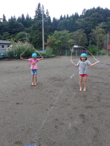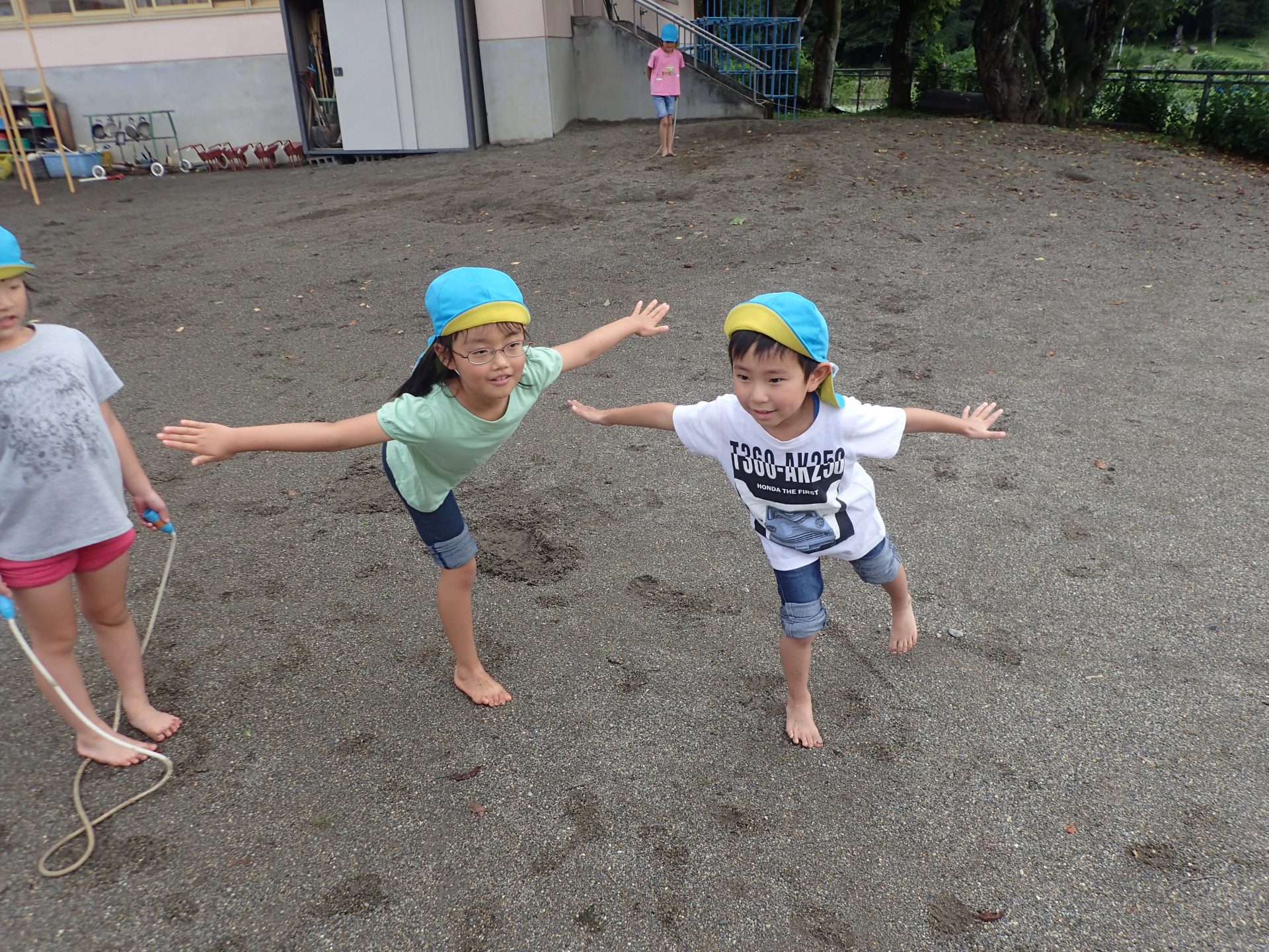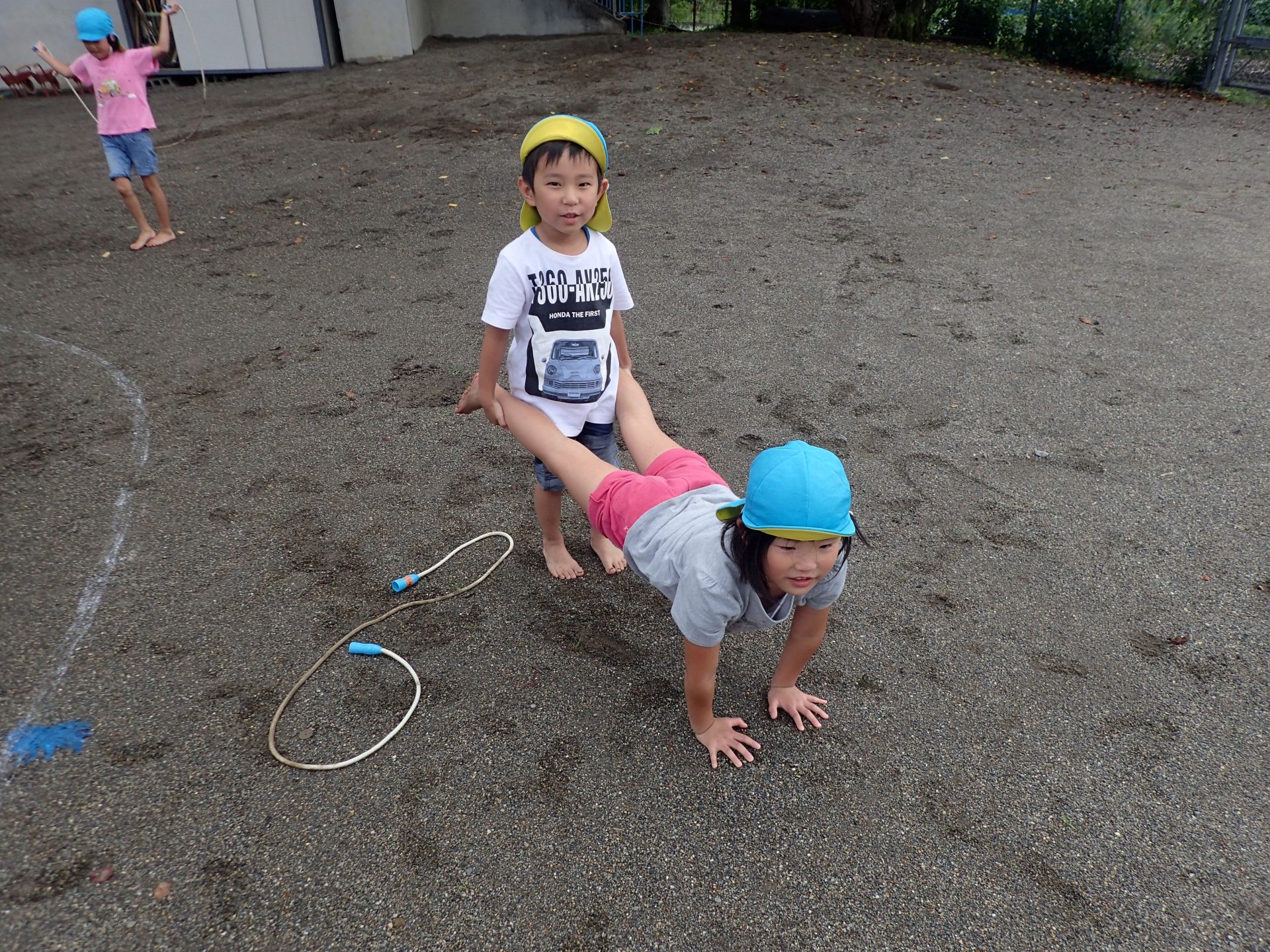 縄跳びしたり組体操をしたり一人ひとり楽しんでいました。