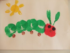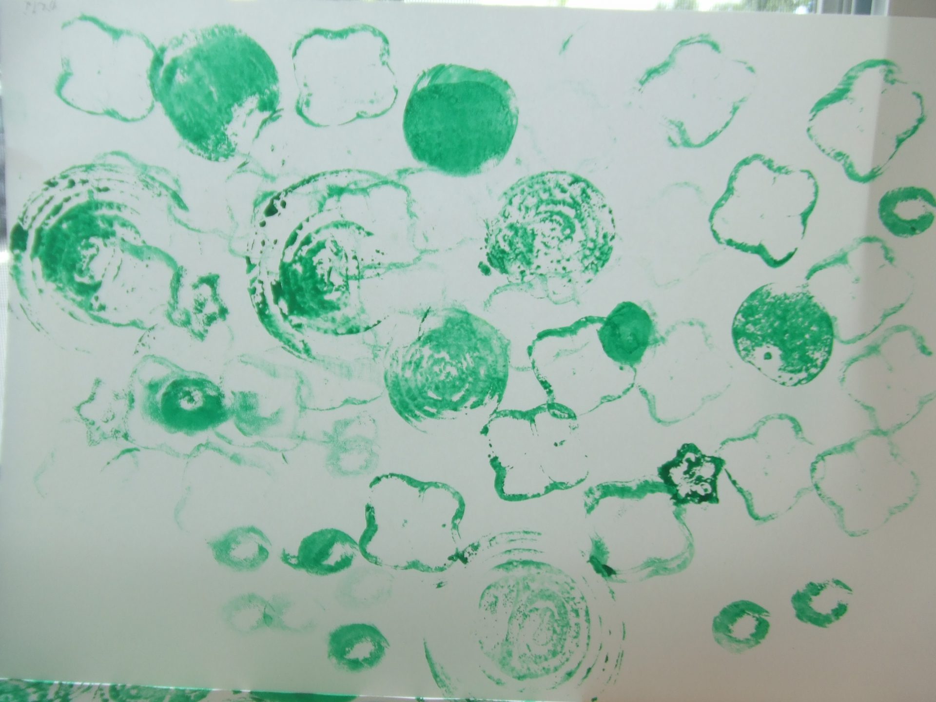 玉ねぎは大きく、絵の具の入ったトレーからはみ出してしまいましたが、何度も回しながら工夫して絵の具をつけていました。