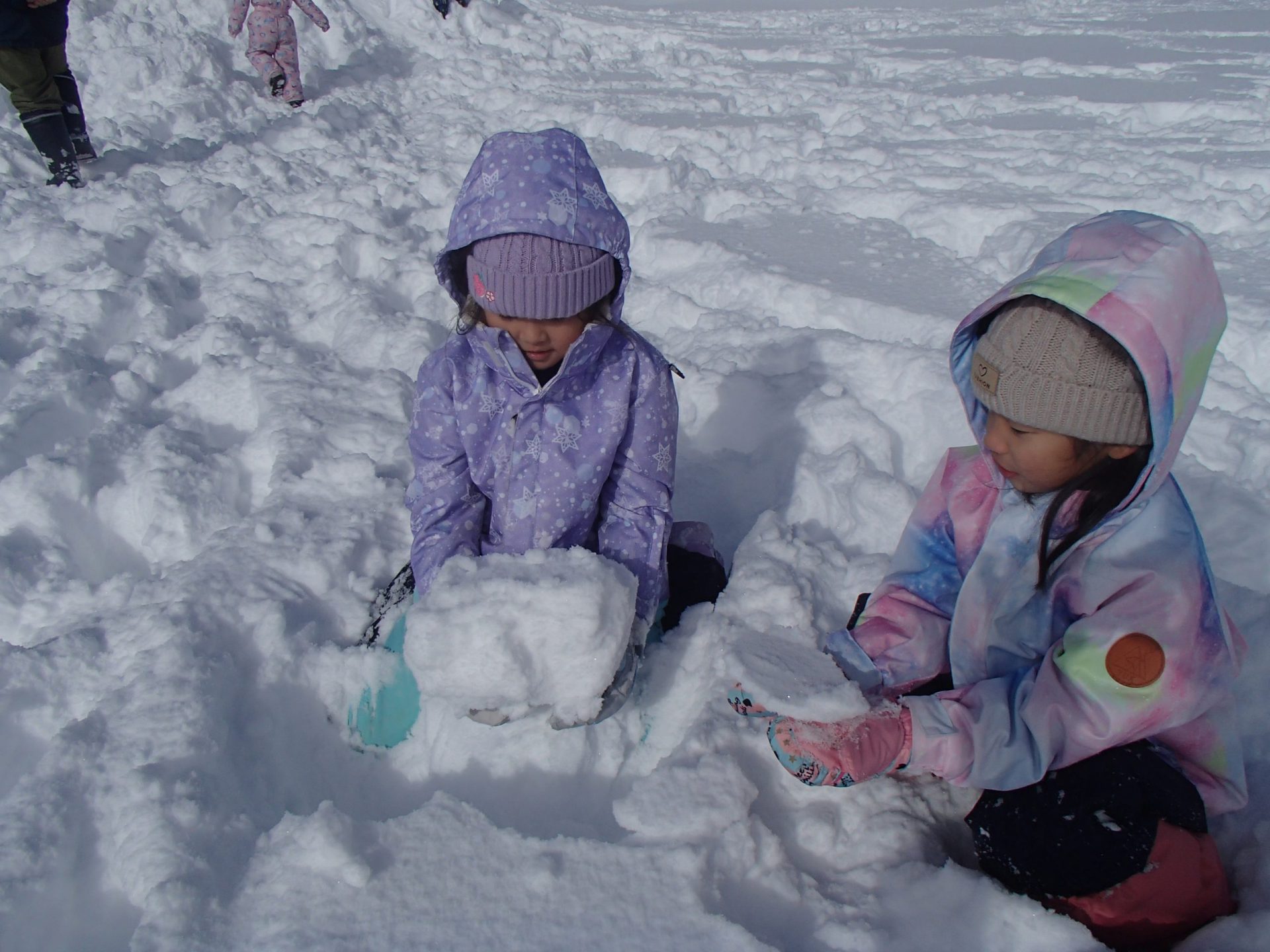 雪を形に切ってそっと持ち上げると、その形のまま切り取れることに気づいて、形作りをしていた子も。