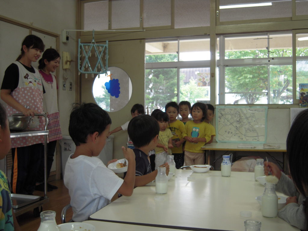 年長さんの収穫物で最後の夏の味覚を楽しみました。