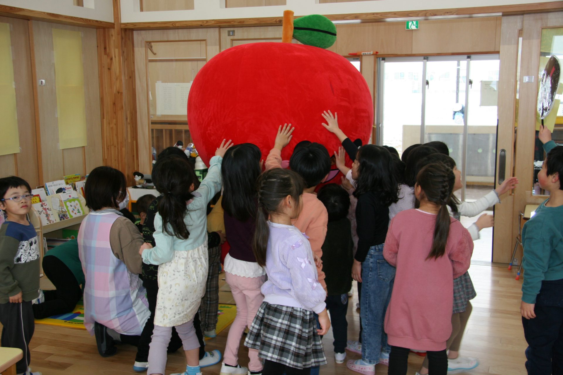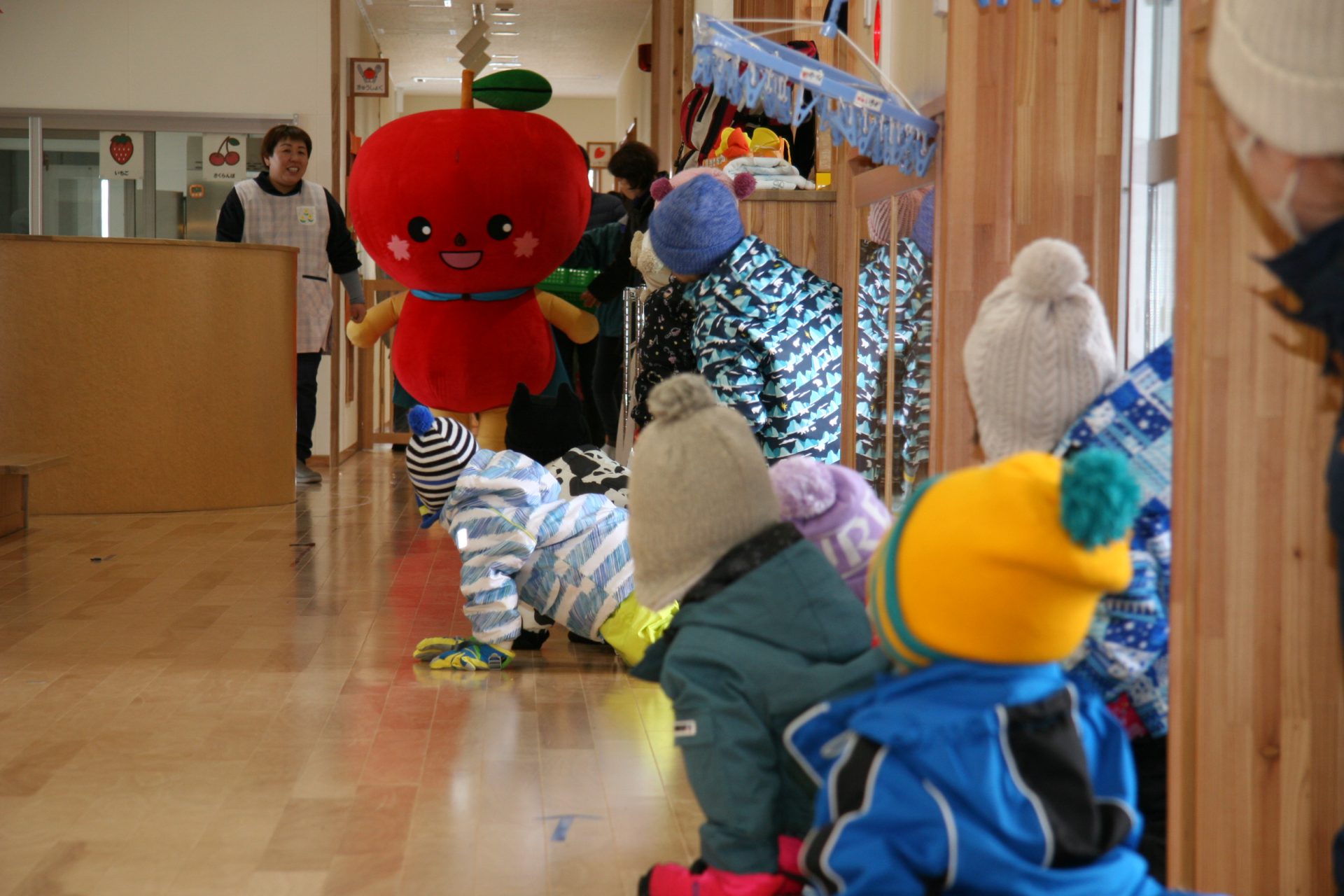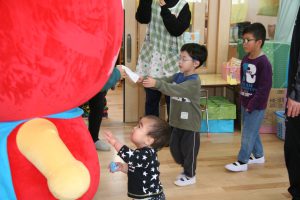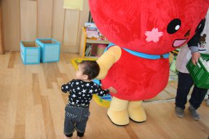「ふくりん、ふくりん!」あ~。倒れそう・・・・・・。でも、どうして保育園に?
