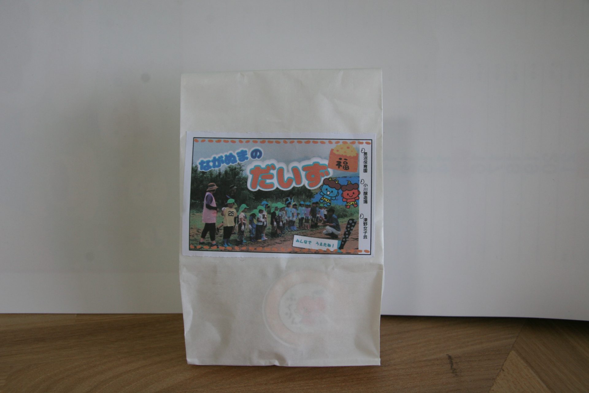 みんなが植えた場所そのものから収穫された大豆です。「ありがとうございます!」