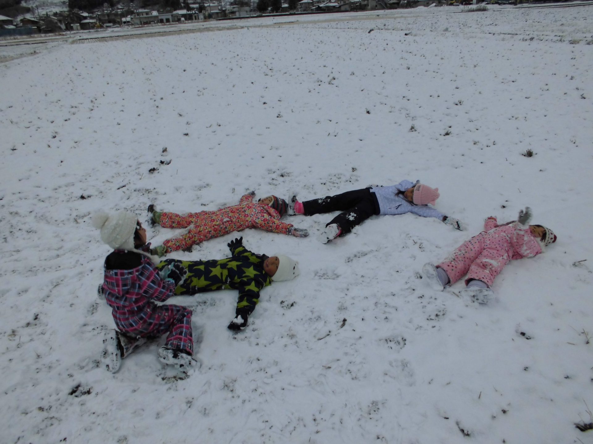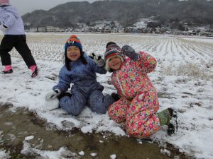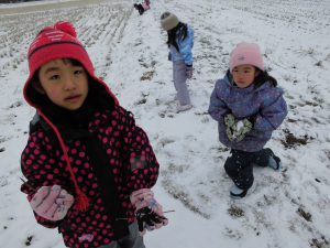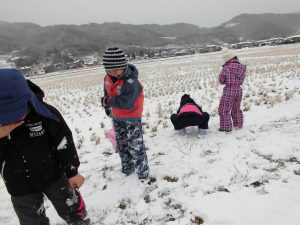 ・雪が積もったあぜ道で遊ぶのは今年初めて。