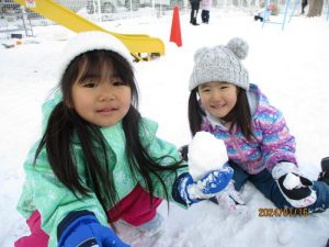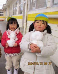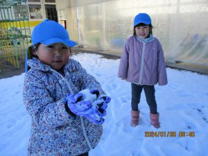 ・雪玉や雪だるまを作る中で雪に触れ、雪の感触を味わっていました。