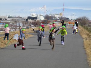 寒い中でも、体をたくさん動かして遊んでいる元気いっぱいの子どもたちです。