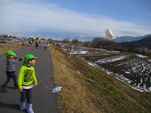 「ぼくたちもやってみよう!」とまた『凧揚げ』を始めました。