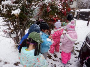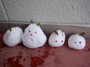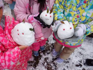 出来上がった雪うさぎは、玄関横に置いておき、おうちの方がお迎えに来たときに見てもらうのも楽しみにしているようでした。