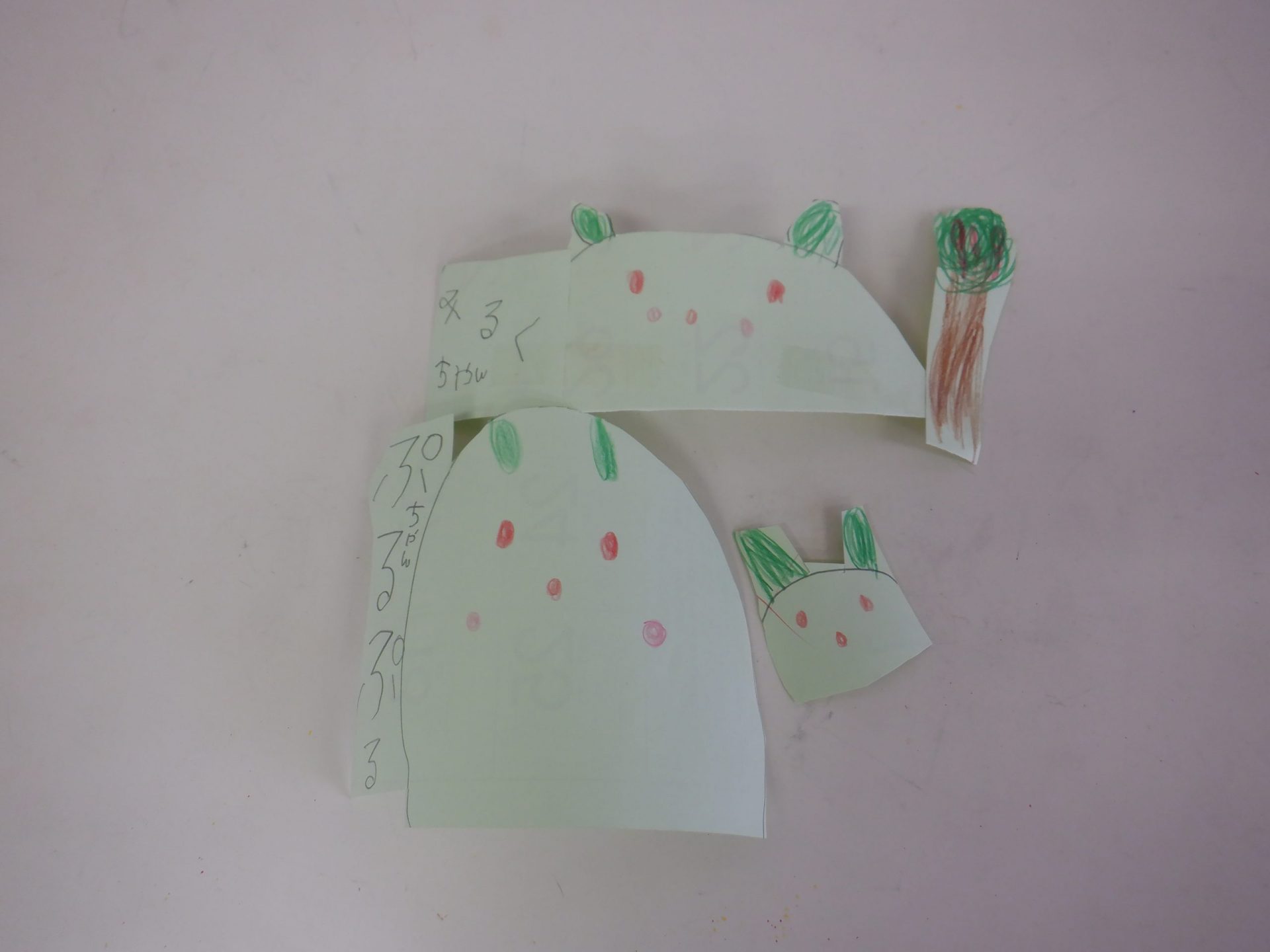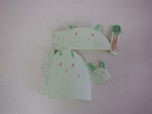 出来上がると「見て!!出来たよ!」「○○ちゃんのかわいいね!」と、見せ合って楽しんでいました。