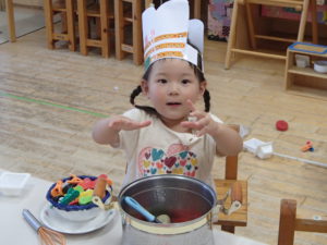 こんな素敵なコックさんの帽子とエプロンも身に着けて嬉しそう(^^)