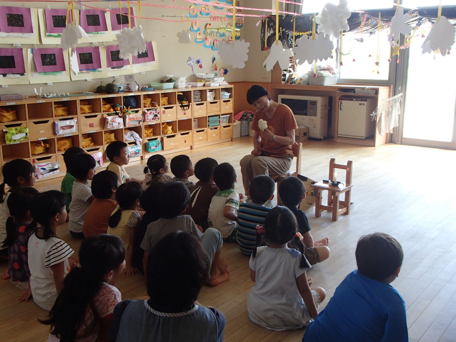 2歳児のこども達も、こんな風に、お話しの会に来年から参加します。