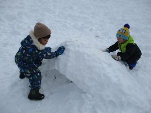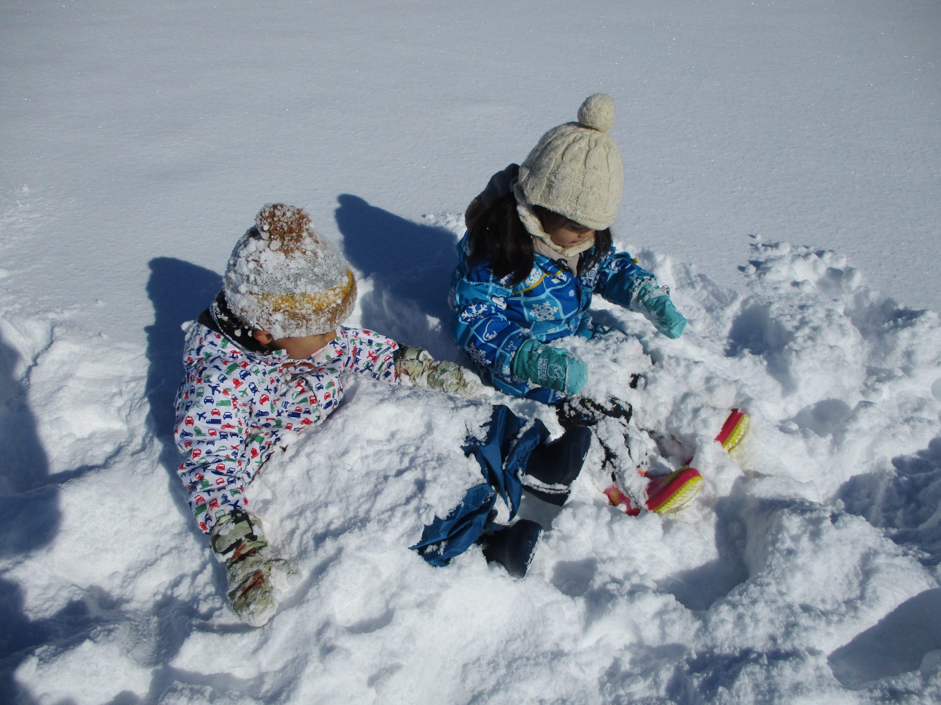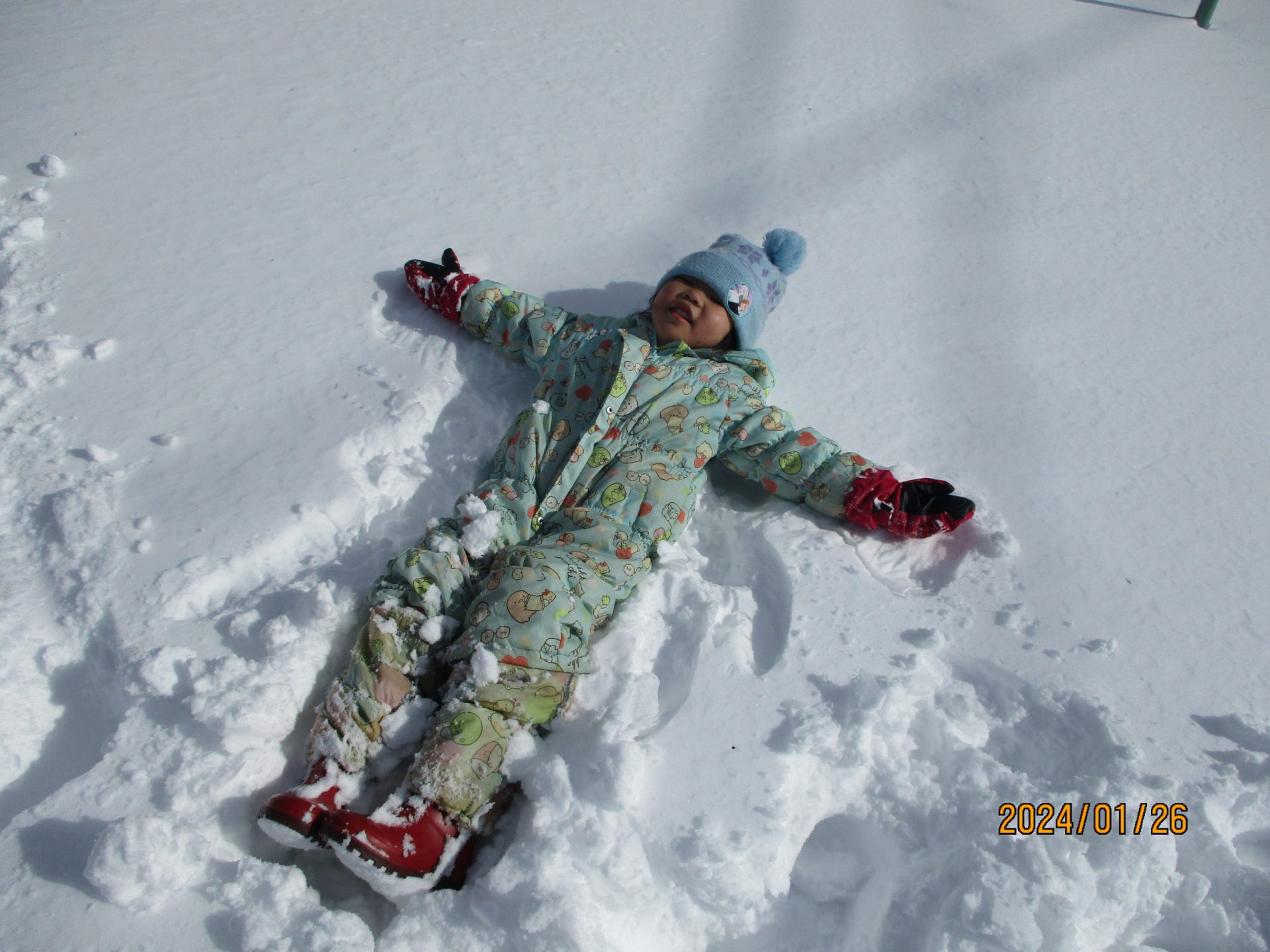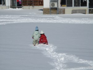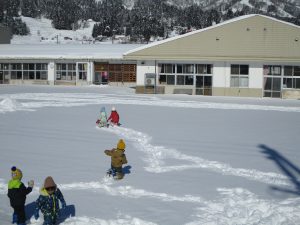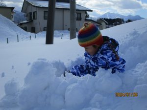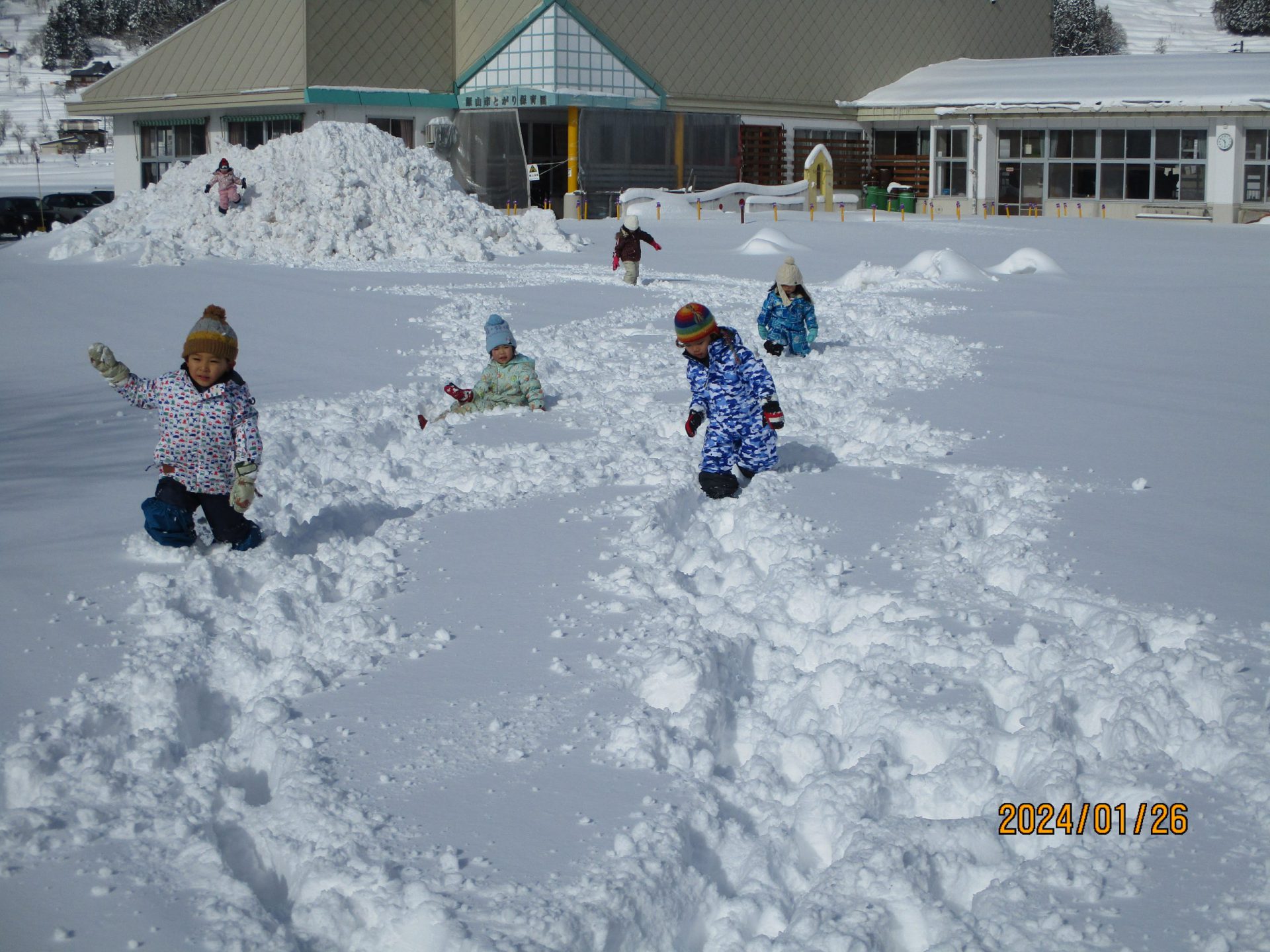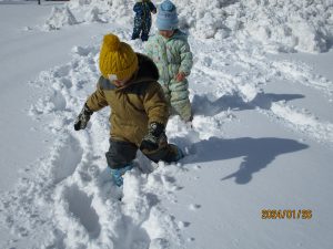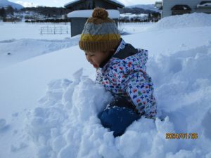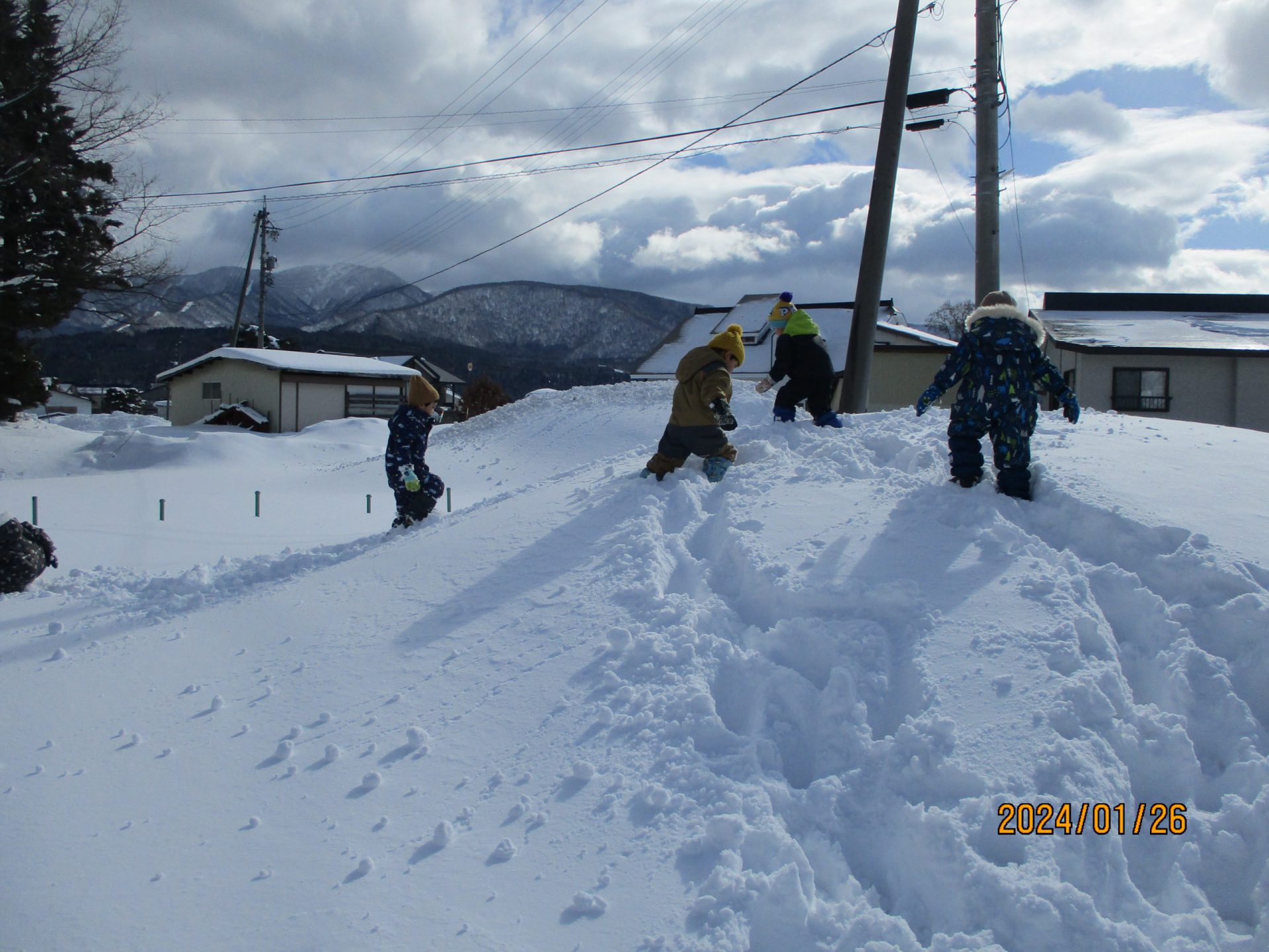 12月下旬から、ここ飯山市とがりにも雪遊びが十分に楽しめる積雪となり、広い園庭で毎日雪遊びを楽しんでいます。