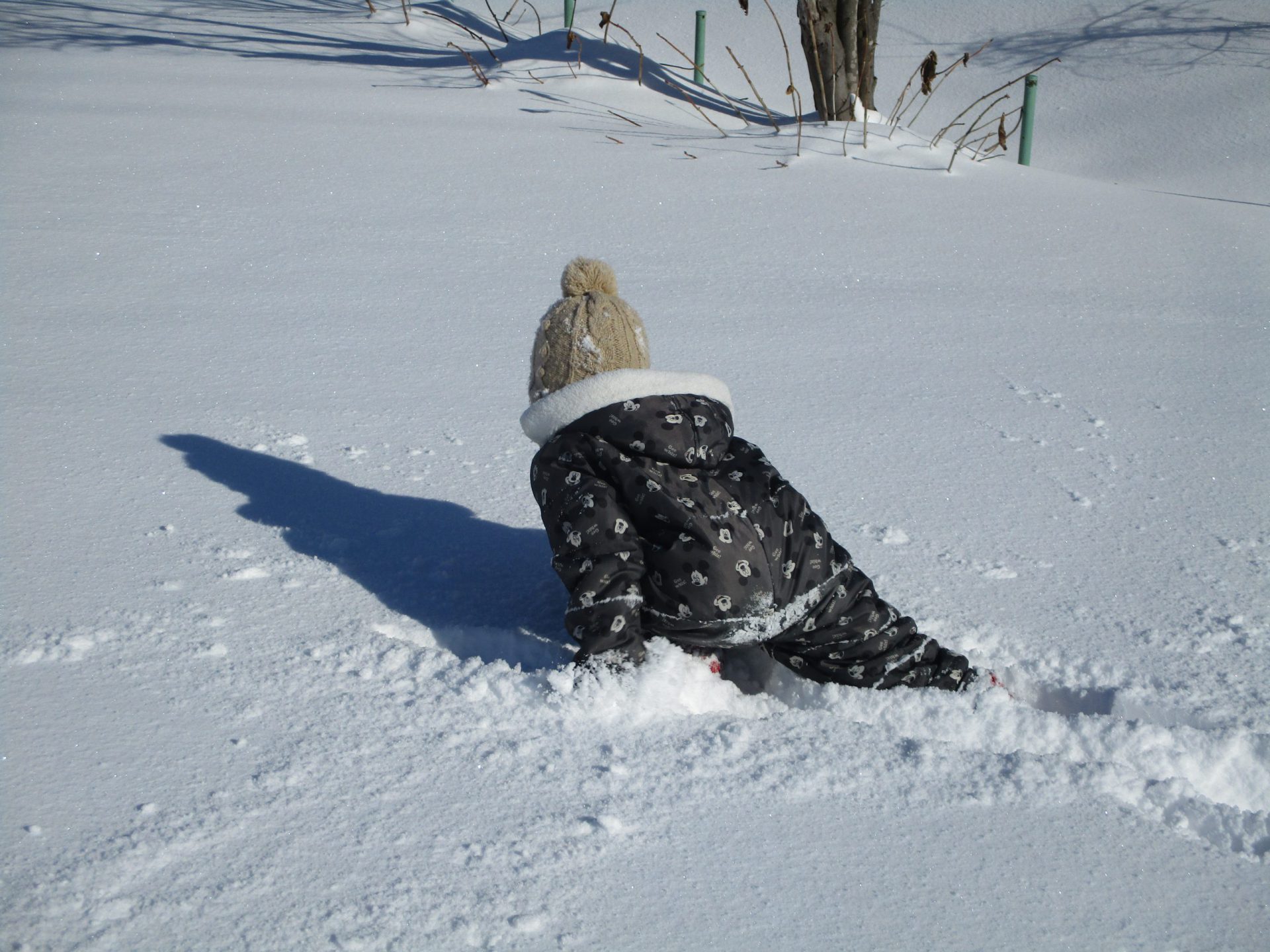「ゆきってふかふかしてるよ!あるくとおもしろいね!」
