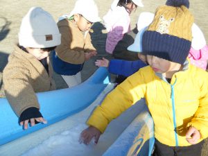 「わぁ、つめた〜い!」 「ちょっとかたいね」
