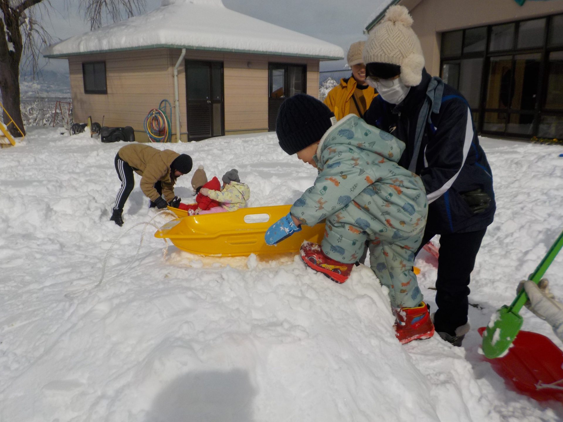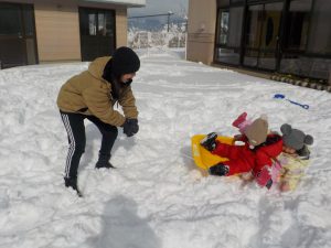 久しぶりの大雪に子ども達も大喜びで、すぐに園庭に出て行きました。