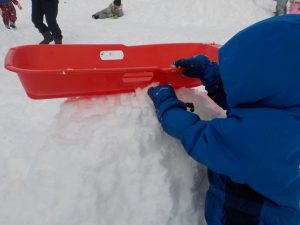 ・どうやったら、そりがよく滑る山を作れるのかな。自分で考えて作った山で滑って嬉しいな。