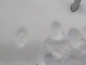 ・お庭が雪だらけ!どこを歩いていこうかな。