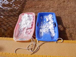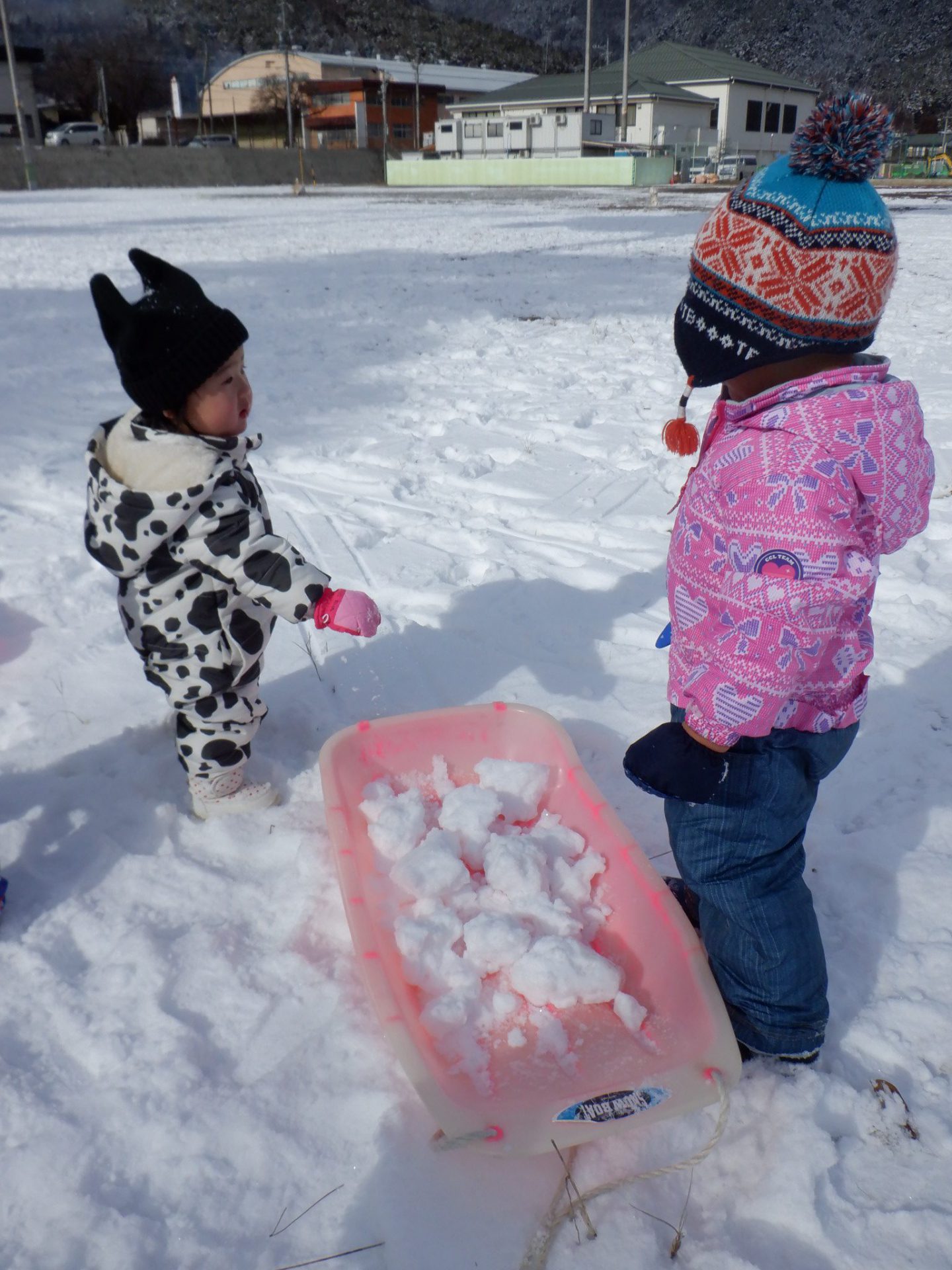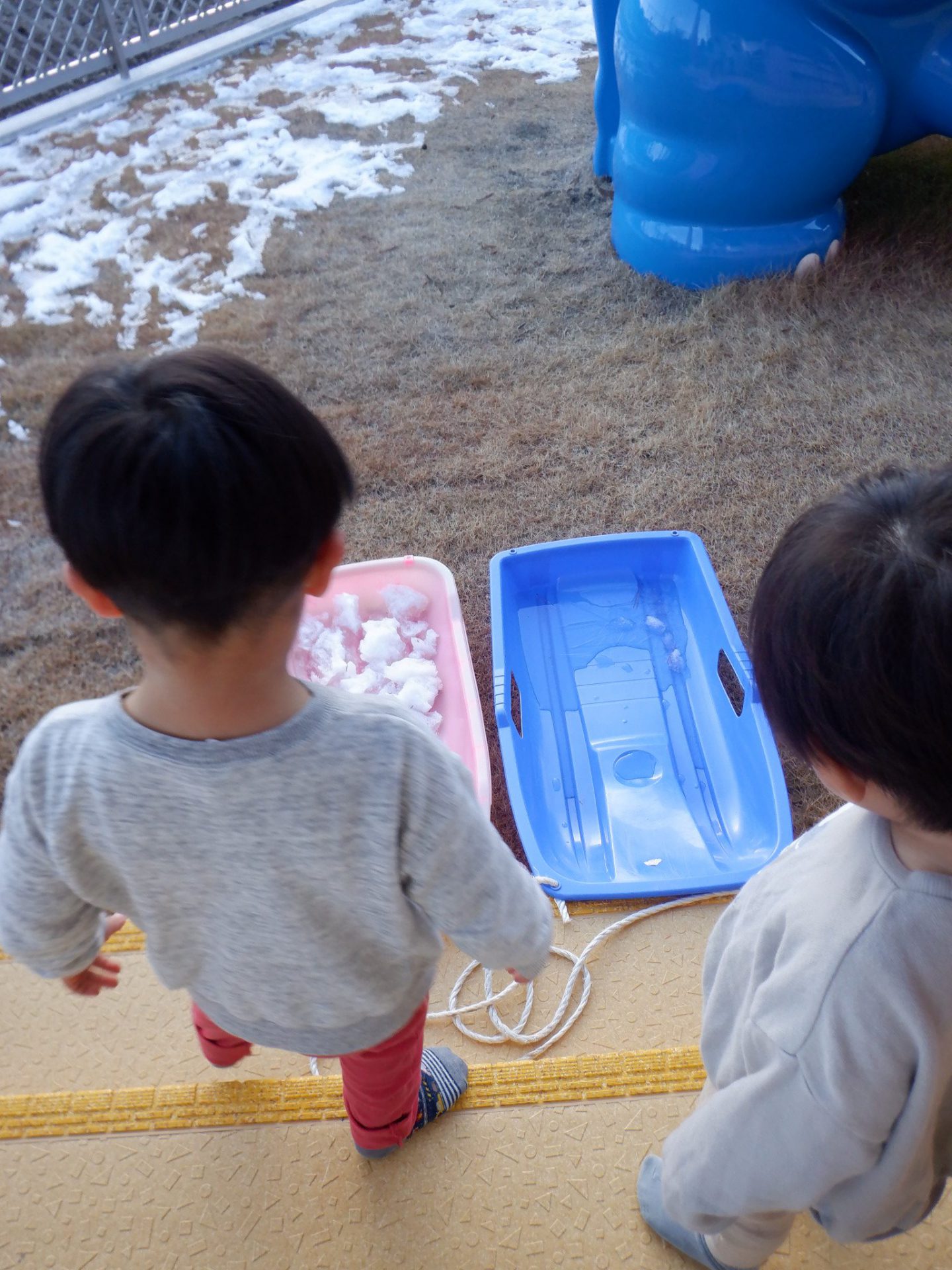 そんな時、ソリに一生懸命 雪を運ぶ2人の姿が・・・